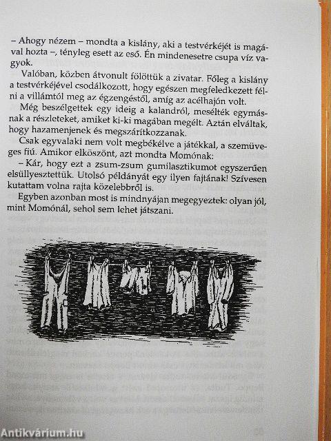 Momo, ennek a történetnek borzas kis hősnője egyedül veszi fel a harcot a szürkék seregével, semmi más nem segíti őt ebben, csak egy szál virág a kezében és egy teknősbéka a karjában.