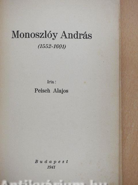 Monoszlóy Andrással eddig a magyar irodalomtörténet alig foglalkozott. Irodalomtörténészeink csak nevét, s műveit említik meg. Néha egy-két dícsérő jelző, elismerő szó. Valamivel többet, néhány bizonyítatlan adatot találunk róla az egyházi írókat tartalmazó művekben. Danielik János, pozsonyi kanonokok (Magyar írók, Budapest 1858) című munkájára, mint ősforrásra vezethetők vissza a másutt is megtalálható adatok. Vissza