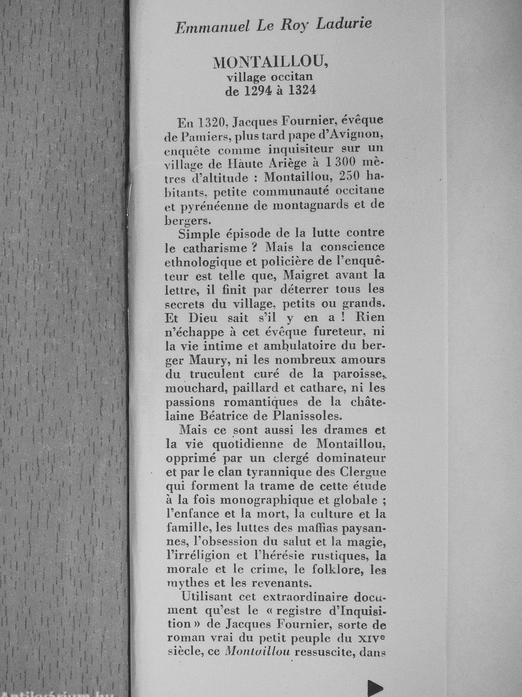 Emmanuel Le Roy Ladurie MONTAILLOU,
