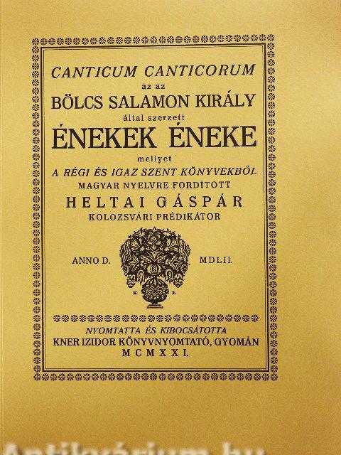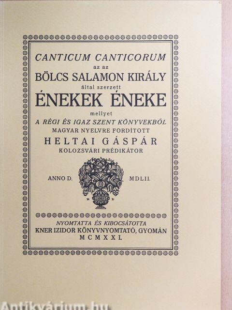 | Bölcs Salamon király énekeinek éneke. A Heltai Gáspár féle 1552. évi Kolozsvárt megjelent fordításban sajtó alá rendezte Király György | |
