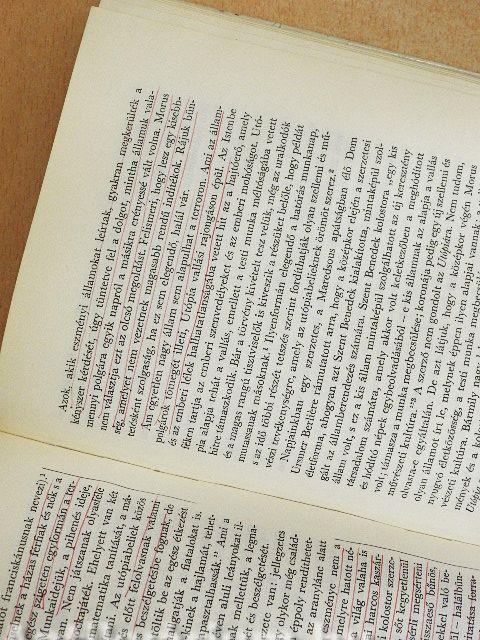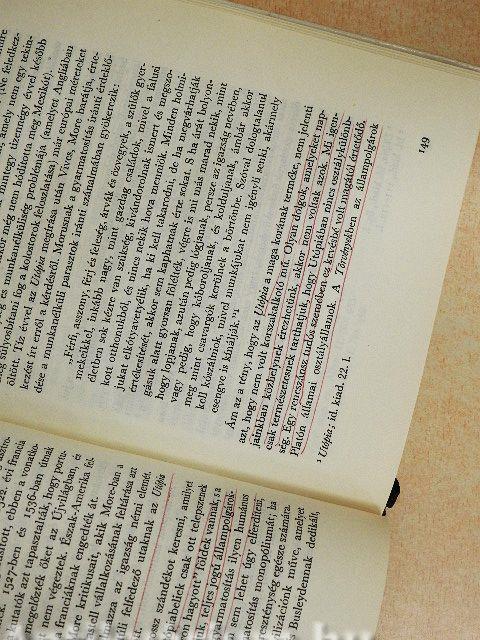 | More elfogadja a nagypecsétet - More támadása Wolsey ellen - "Egy - isten a tudója, miféle - parlament" - Támadás a klérus ellen - Az egyház legfőbb vezetője - Még egyszer a király "nagy ügyéről" - Polémikus írások - Az utópiabeli vallás és a Henrik-féle "reform" - "Ama tiszteletre méltó és megvesztegethetetlen bíró" - A kancellár és az eretnekek - More visszavonulása - A császár dicsérete | |