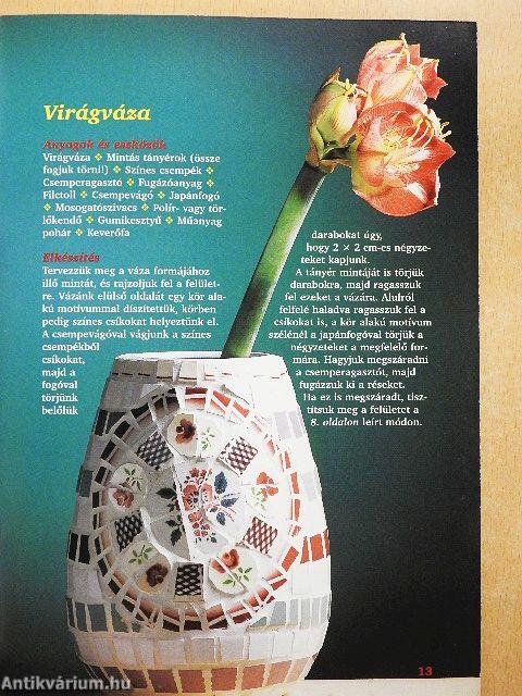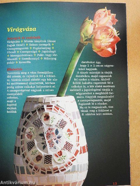Az egyes leírásokban lépésről lépésre bemutatjuk többek között képkeret, kulcsszekrény, asztalka stb. díszítését.