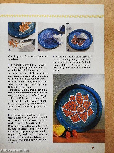 A mozaikkészítés pontos munkát és sok türelmet kíván, hiszen a mozaikdarabokat egyesével összeillesztve kell kialakítanunk a képet. Könyvünk két alapvető technikát, a közvetlen és a közvetett módszert ismerteti, majd azt is bemutatja, hogy másféle anyagokból, pl. kagylókból és csigákból hogyan tudunk mozaikot készíteni.