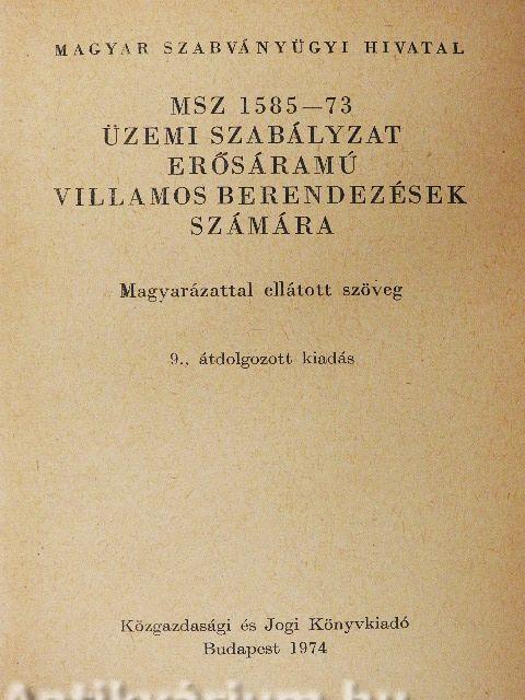 | MSZ 1585-73 Üzemi szabályzat erősáramú villamos berendezések számára | 11 |