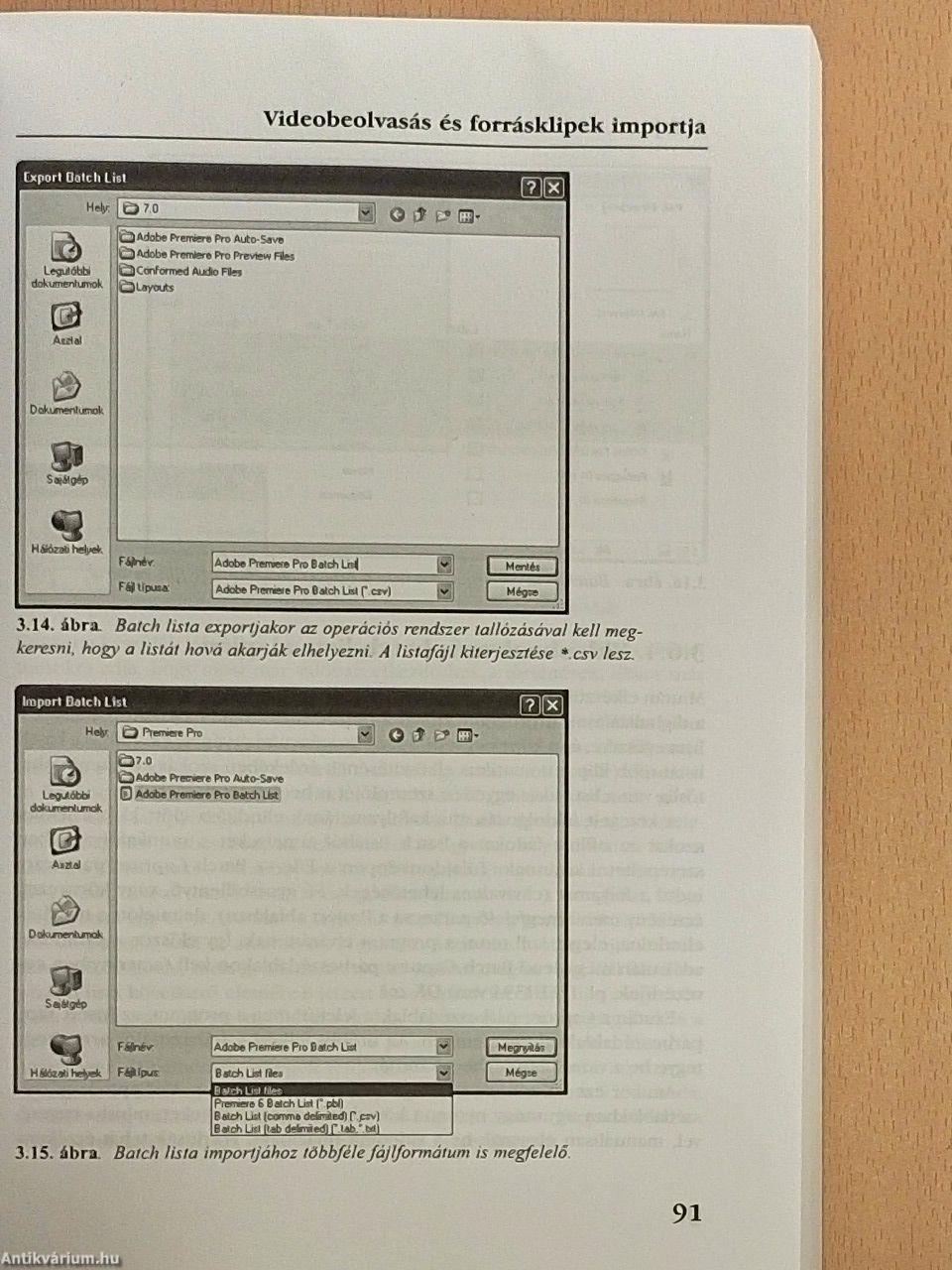 Mágnesszalagra való visszaírás analóg eszköznél, annak Premiere által történt vezérlésével387