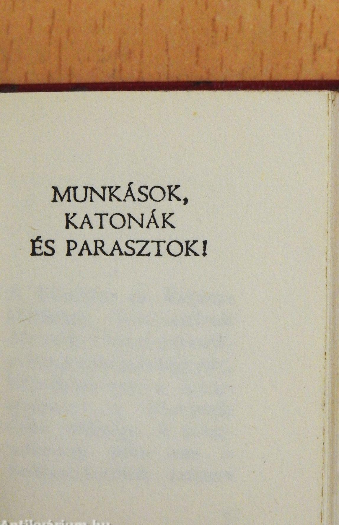 A Munkás- és Katonaküldöttek Szovjetjeinek Második Összoroszországi Kongresszusa megnyílt. Képviselve van a kongresszuson a Szovjetek óriási többsége. A kongresszuson jelen van a Parasztszovjetek számos küldötte is. A megalkuvó Központi Végrehajtó Bizottság meghatalmazása lejárt. A kongresszus a munkások, katonák és parasztok óriási többségének akaratából, a munkások és a helyőrség Petrográdban végrehajtott győzelmes felkérésére támaszkodva, kezébe veszi a hatalmat.