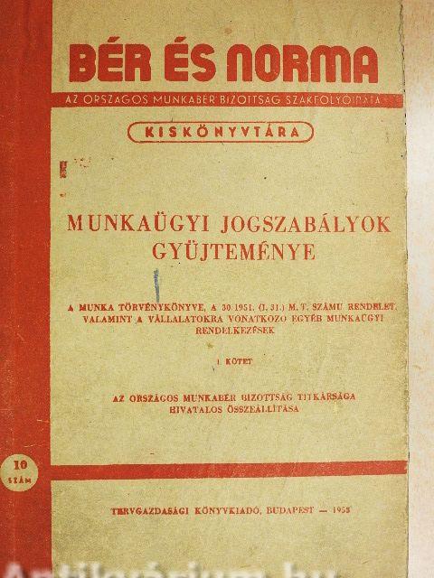 Munkaügyi jogszabályok gyűjteménye I. Munkaügyi jogszabályok gyűjteménye I. Munkaügyi jogszabályok gyűjteménye I.