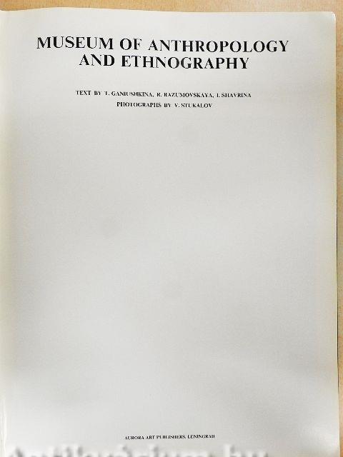 A Szovjet Tudományos Akadémia Antropológiai és néprajzi múzeuma a világ vezető néprajzi múzeumai közé tartozik. Ez az album a múzeum hatalmas gyűjteményeinek legérdekesebb és legértékesebb darabjait mutatja be szóban és képekben. A tárgyak a világ népeink különböző kultúráit mutatják be (japán, Dél-Ázsia, Új-Zéland, Óceánia, Szudán, Észak- Amerika, stb.)