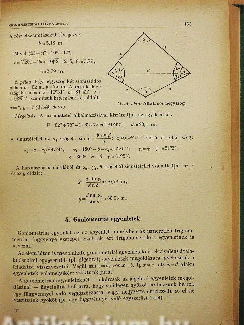 | Goniometriai egyenletek | 163 |