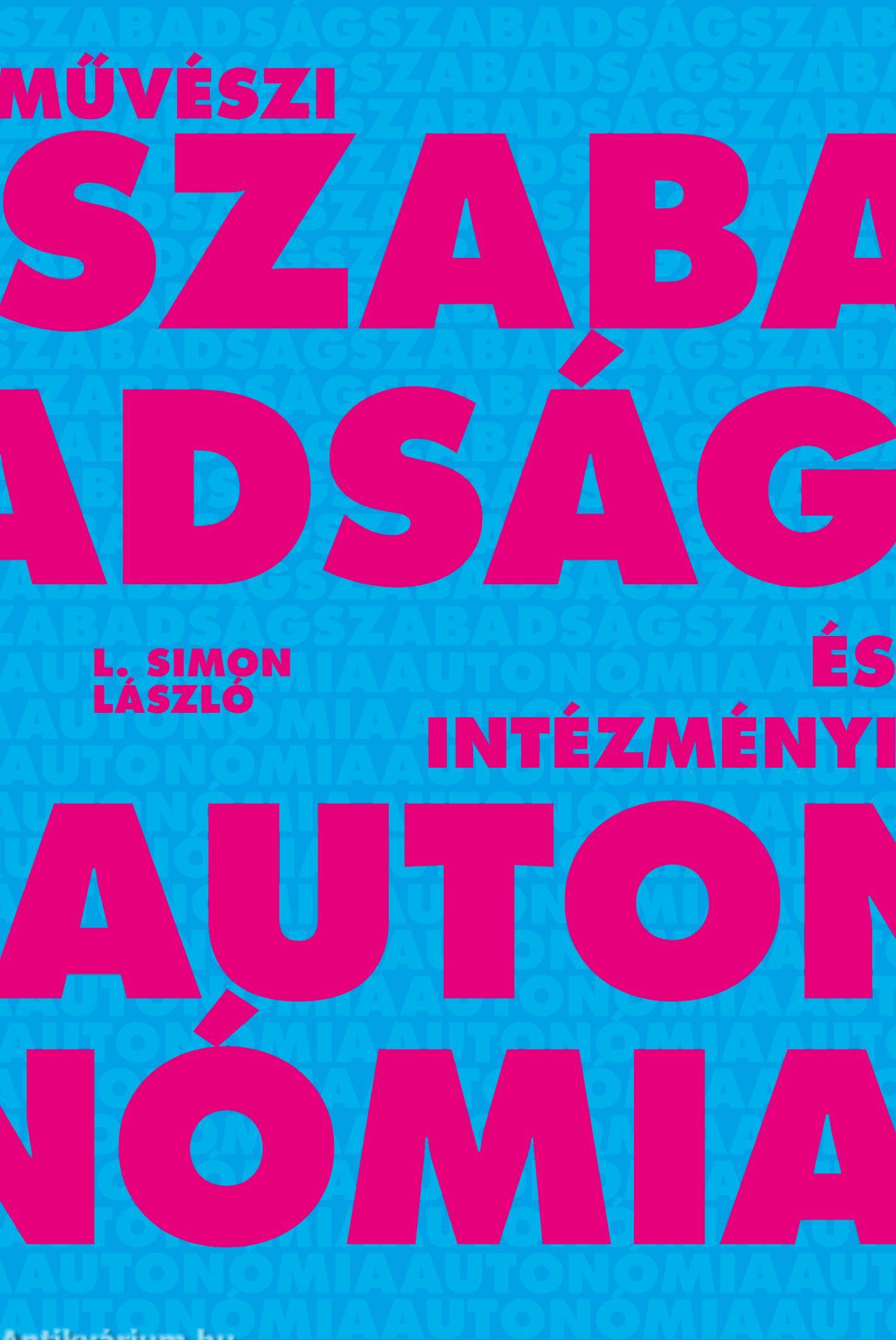 L. Simon László legújabb, Művészi szabadság és intézményi autonómia címet viselő esszékötete többek között a szabad alkotás és a különböző fenntartású intézmények összefüggéseit vizsgálja. A szerző kultúrpolitkai esszéinek gyűjteménye az intézményi autonómia rendkívül összetett kérdéseit is körüljárja. Amint a szerző fogalmaz, a "szabad alkotáshoz autonóm intézményekre is szükség van. És annak az igazságnak a belátására, hogy a politika nem tud mindent uralni és nem is kell rá törekednie, éppen a saját távlatos céljainak érvényesülése érdekében... A szabadságukért, az önrendelkezési jogukért és a szuverenitásukért sokat küzdő nemzetek fiai pontosan tudják, az intézmények garanciát jelentenek az értékek megőrzésére és továbbadásukra. Kisebbségi létbe kényszerült honfitársaink szerte a Kárpát-medencében még inkább érzik ezt, s intézményeikhez, szervezeteikhez körömszakadtáig ragaszkodnak. Az intézmények autonómiája rend kívül összetett kérdés, hiszen egészen más egy állam által fenntartott költségvetési szerv, és a tagok önrendelkezésére építő, egyúttal alkotmányos védelmet kapó köztestület helyzete".