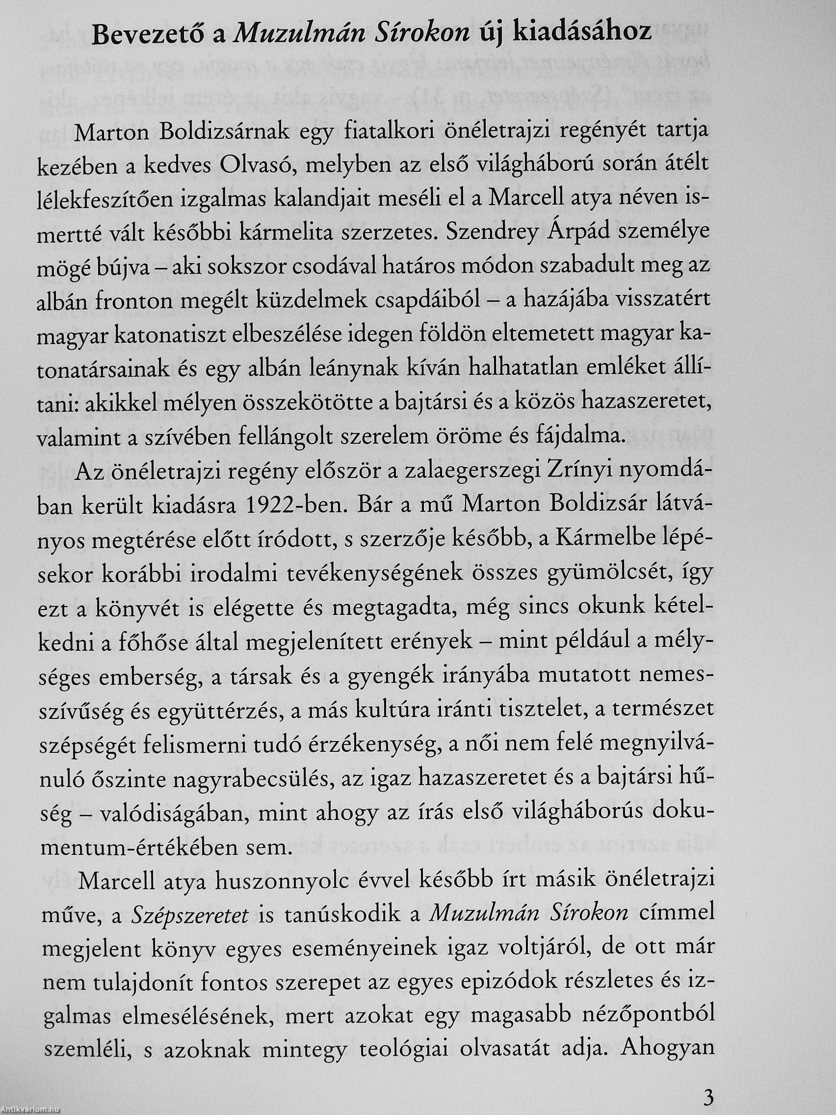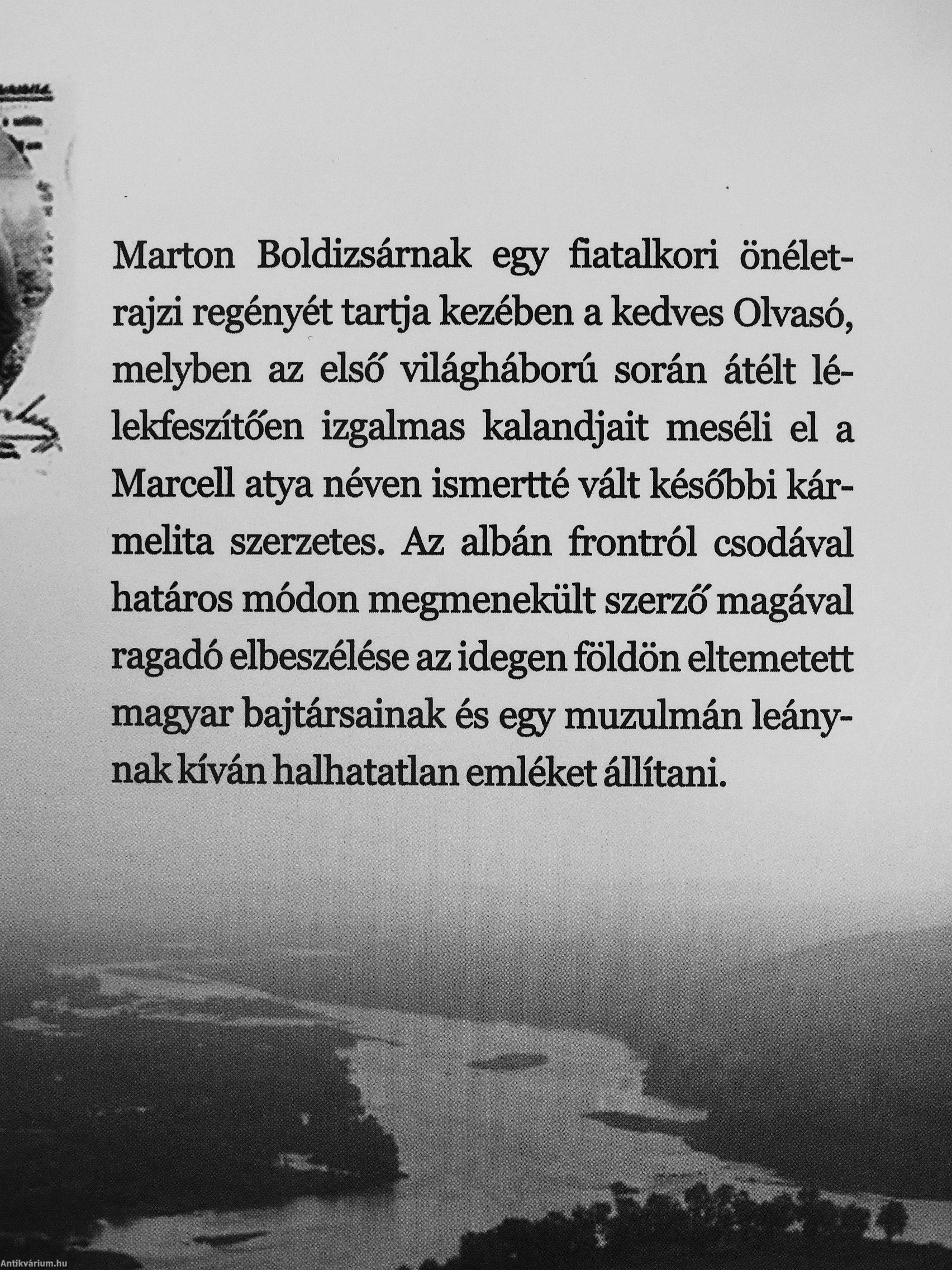 Marton Boldizsárnak egy fiatalkori önéletrajzi regényét tartja kezében a kedves Olvasó, melyben az elso világháború során átélt lé-lekfeszítóen izgalmas kalandjait meséli el a Marcell atya néven ismertté vált késól)bi kár-melita szerzetes. Az albán frontról csodával határos módon megmenekült szerzó'magával ragadó elbeszélése az idegen földön eltemetett magyar bajtársainak és egy muzulmán leánynak kíván halhatatlan emléket állítani.