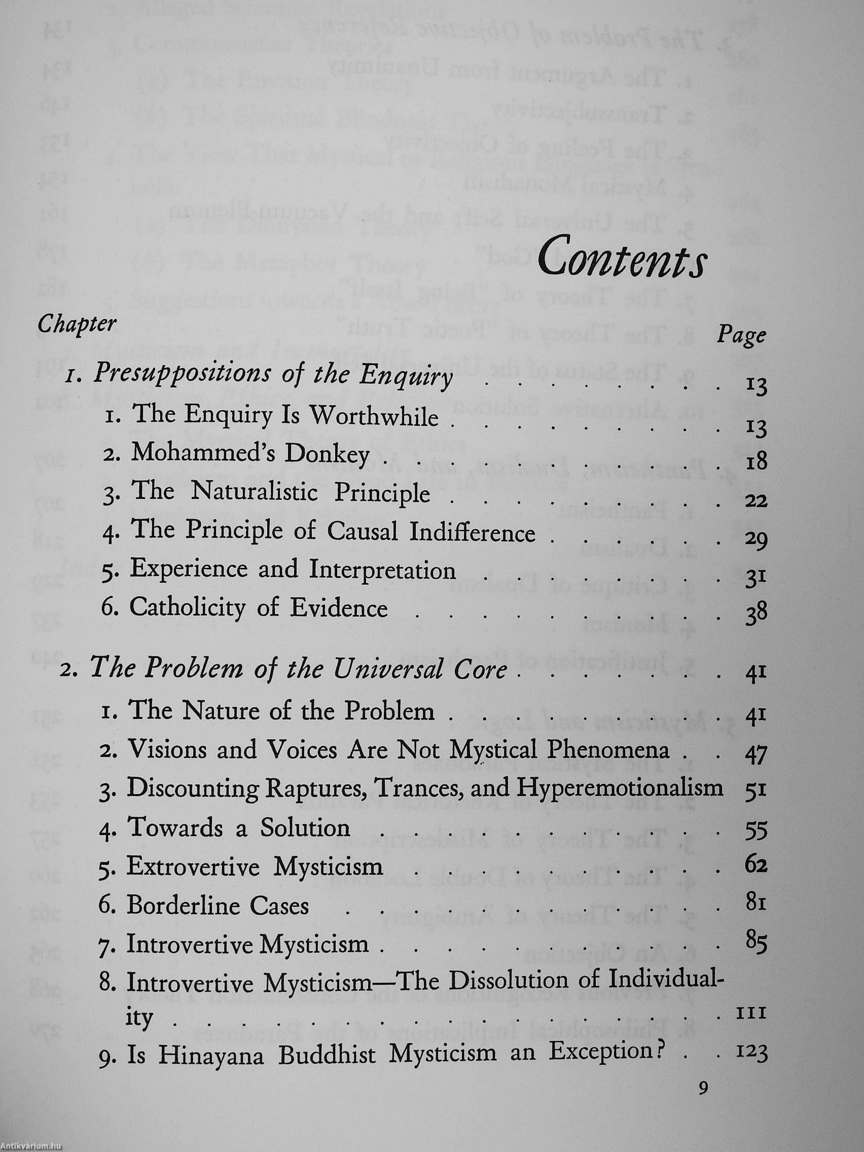 The publishers believe it is not too much to say that Mysticism and Philosophy will be recognized as a work of distinction and importance comparable to The Varieties of Religious Experience by William James.
