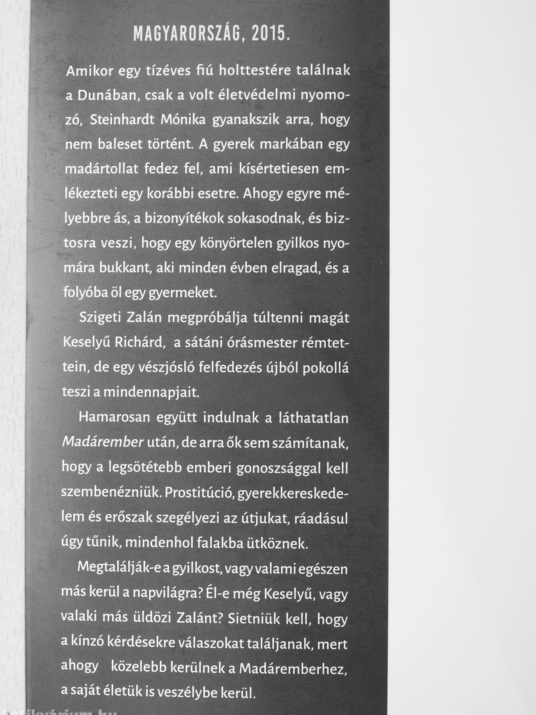 Megtalálják-e a gyilkost, vagy valami egészen más kerül a napvilágra? Él-e még Keselyű, vagy valaki más üldözi Zalánt? Sietniük kell, hogy a kínzó kérdésekre válaszokat találjanak, mert ahogy közelebb kerülnek a Madáremberhez, a saját életük is veszélybe kerül.
