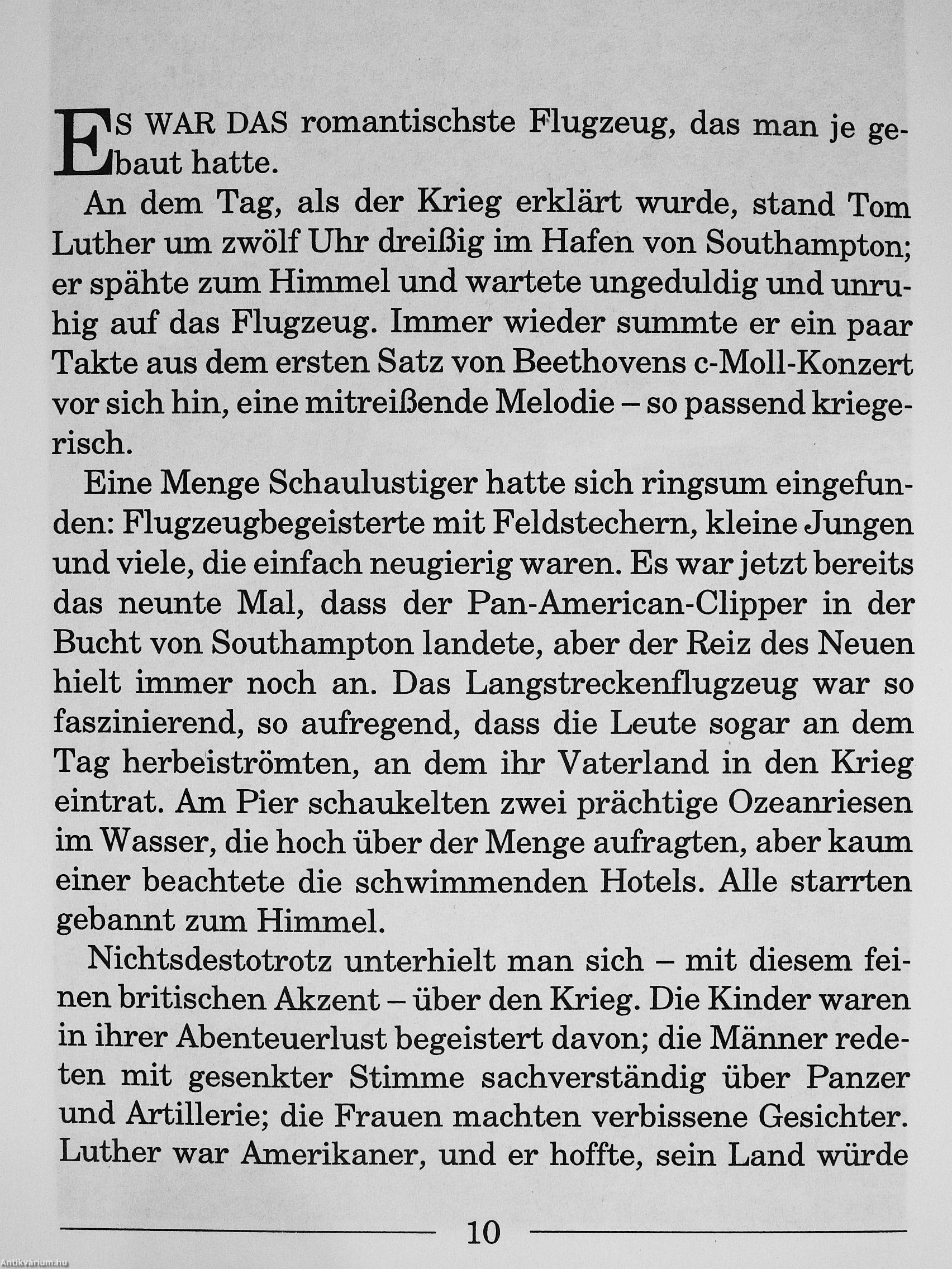SEPTEMBER 1939 +++ DER PAN -AMERICAN - FLYING - CLIPPER HEBT VOM WASSER AB + + + TRANSATLANTIKFLUG, KURS: WESTNORDWEST + + + 40 MENSCHEN AUF DER FLUCHT + + + VOR DEM KRIEG UND VOR SICH SELBST + + + NUR EINER KENNT DIE TÖDLICHE GEFAHR, DIE AUF SIE WARTET + + + WENN ES NACHT WIRD ÜBER DEN WASSERN, WIRD SICH IHR SCHICKSAL ENTSCHEIDEN + + +