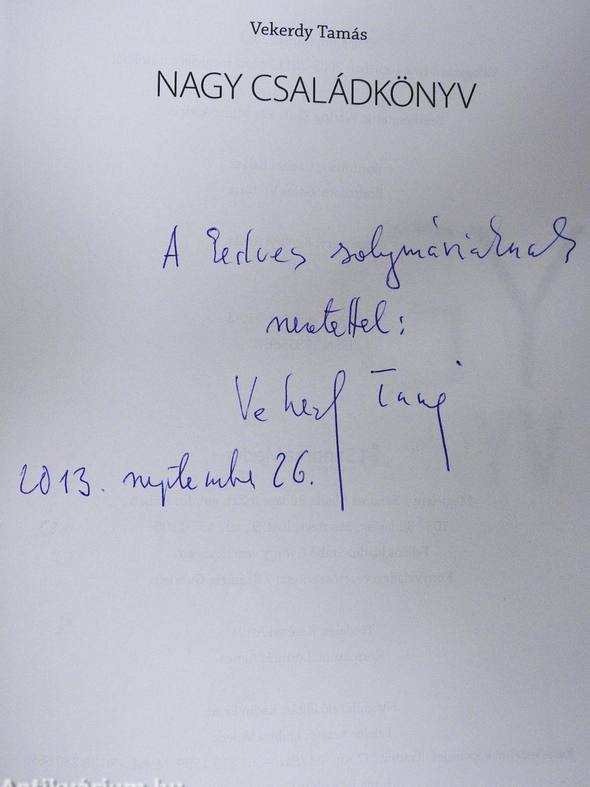 | Megjegyzés: | Vekerdy Tamás szerző által dedikált példány. |