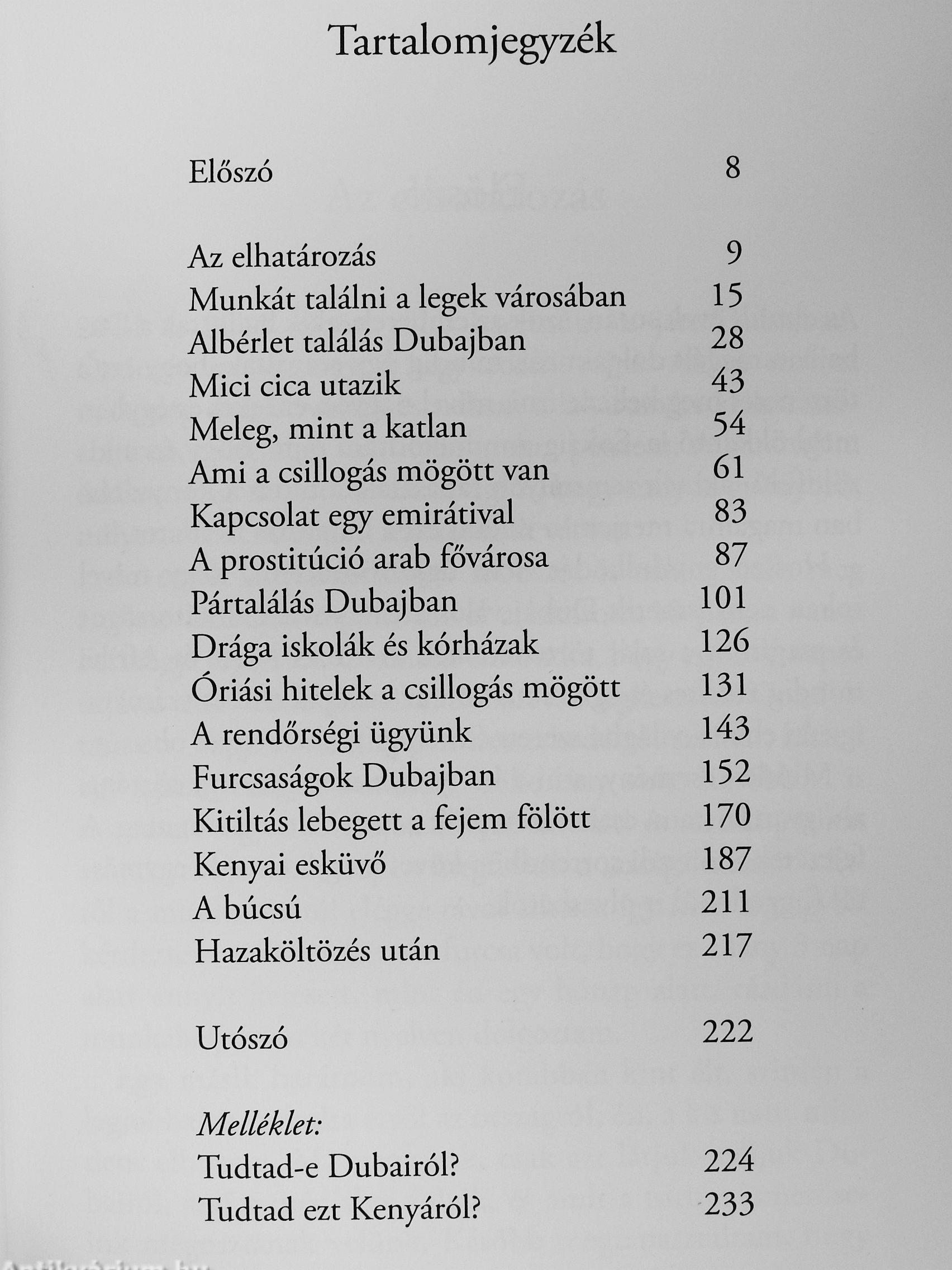 Talán már hallottál olyan információkat az arab világról, amik alapján ez a tündérmese megrepedezni látszik. De valószínűleg nem' találkoztál még olyan életúttal, ami regénybe - sőt, néhol krimibe - illő fordulatokkal, sokkoló vagy megindító epizódokkal van tele, ám nem fikció, hanem egy magyar lány ténylegesen átélt viszontagságainak^ sorozata. Megismerheted Dubaj igazi arcát, amit a reklámokban nem láthatsz. Elmesélem hogy milyen európai nőként Duhajban dolgozni és élni, őszintén írok a munkahelyi és a párkeresési megpróbáltatásaimról. Sokaknak vannak cifra történetei a Tinderről, én azonban emeltem a tétet, és arab férfiakkal ismerkedtem az applikáció segítségével. Vajon túl vakmerő húzás volt?