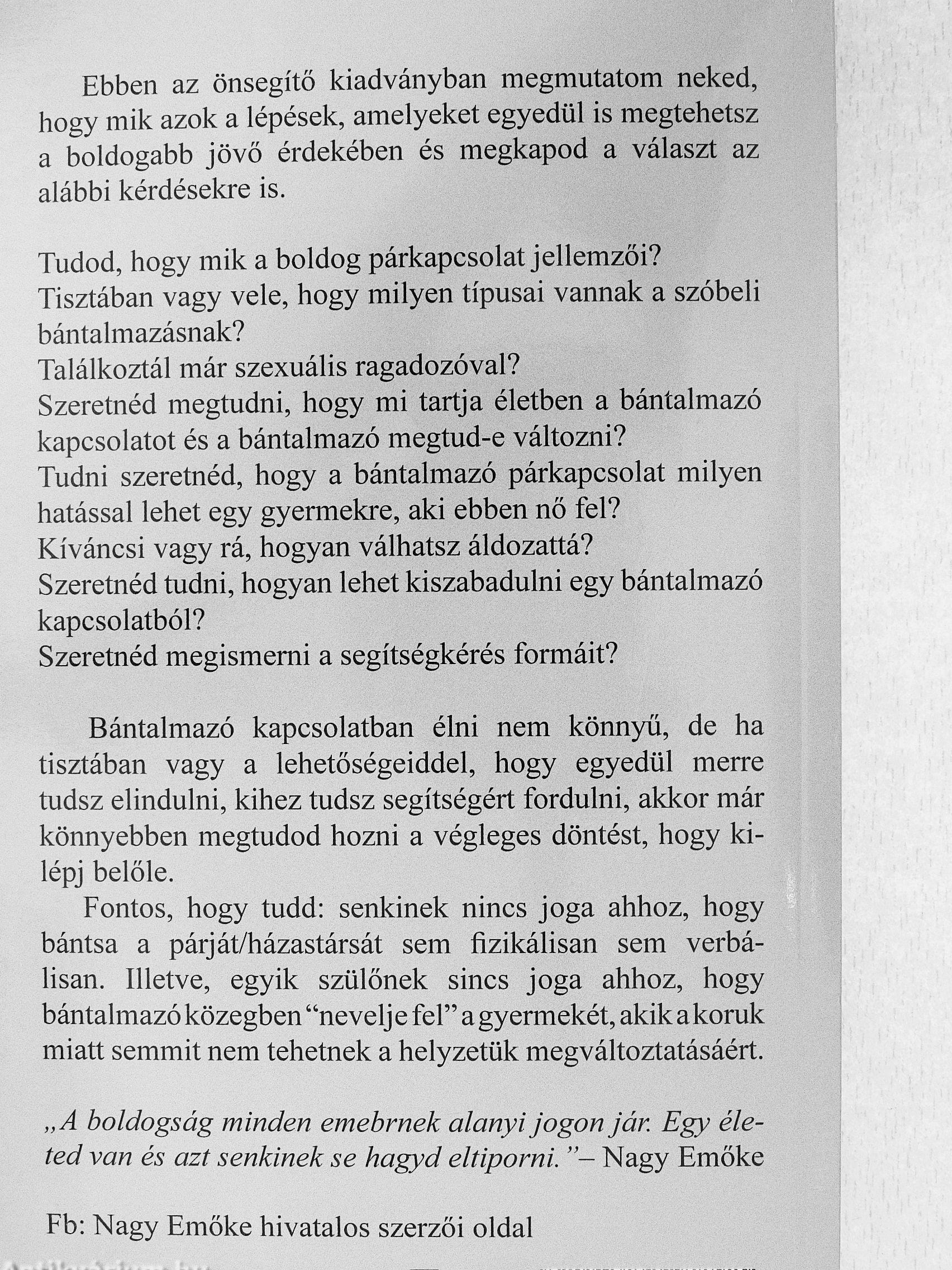Ebben az önsegítő kiadványban megmutatom neked, liogy mik azok a lépések, amelyeket egyedül is megtehetsz a boldogabb jövő érdekében és megkapod a választ az alábbi kérdésekre is.