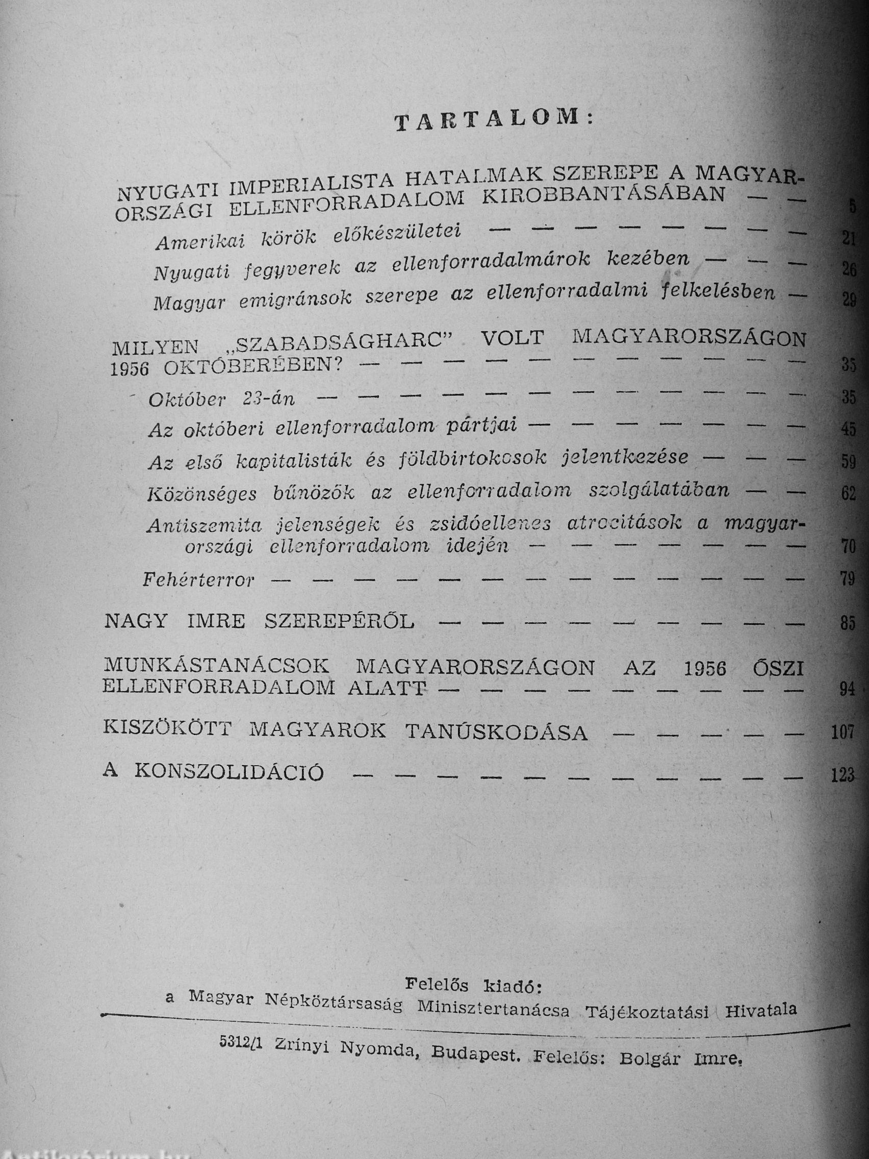 Kiadó: Magyar Népköztársaság Minisztertanácsa Tájékoztatási Hivatala
