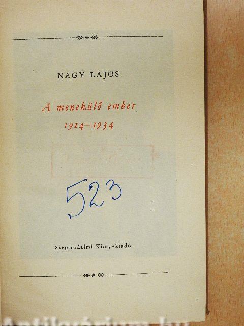 A menekülő ember, a négy kötetre tervezett önéletrajz második darabja, már posztumusz könyv. Betegen, a halál árnyékában írta Nagy Lajos, sértetten és önigazolást keresve, 1954-ben. Ez a könyv 1919-től 1934-ig követi az író pályáját, mégis inkább irodalmi és társadalmi önkép, semmint személyes visszatekintés, vallomás. A műfaj hagyományaitól eltérően nem az "én és a korszak", hanem a "korszak és én" írói attitűdje jellemzi, olyan tehát, mint a legkitűnőbb szociografikus regényei - tárgyilagosan távolságtartó, tényszerűen hiteles. Pedig a mellőzött, ritkán elismert, anyagi gondokkal is gyakran küszködő író szinte állandó konfliktusban volt korával, igazságkeresése, eredendő humanizmusa, meg nem alkuvó gránitjelleme újból és újból elvágta előtte a polgári értelemben vett érvényesülés útját. Nagy Lajos mindenkinél tisztábban látta helyzetét. Tudta, hogy némi simulékonysággal egyszerre tehetné szalonképessé magamagát és művészetét. De ő inkább maradt "menekülő ember", aki tudatosan tartotta távol magát az integráció csábító igézetétől. Önmagával volt hát elsősorban szigorú, de másokkal szemben sem ismerte a könnyű föloldozást. Talán ezzel is magyarázható, hogy ez a töredékes portrésorozatot felvillantó könyv nem irodalmi barátságok szubjektív története. Neki inkább pályatársai voltak, akiket előbb ítélt meg homo ethicusként, és csak azután homo litteratusként. De végtére is, nem irodalomtörténetet írt, hanem a forradalom utáni évek, a fehérterror, majd a fasizálódó Magyarország kulturális életében próbálta saját helyzetét körvonalazni, abban a sokszínű, bonyolult, egzisztenciális érdekellentétekkel és érdekszövetségekkel átszőtt irodalmi világban, mely hűen tükrözte, sőt olykor - természeténél fogva - felnagyítva érzékeltette az egész társadalom ellentmondásait, fonákságait.