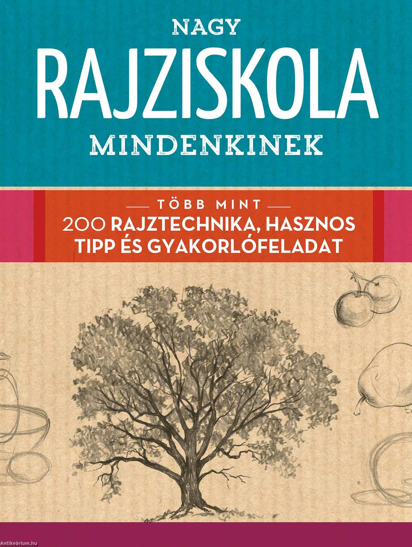 A Nagy rajziskola mindenkinek című kiadvány olyan átfogó útmutató, amely a lehetséges rajztémák rendkívül széles tárházát mutatja be, az emberábrázolástól kezdve az állatok, virágok, tájképek és számos további téma megörökítéséig. A kötet azoknak az alapvető eszközöknek és alapanyagoknak (például különféle típusú ceruzák, radírok, vázlattömbök, rajzpapírok és számos egyéb eszköz) bemutatásával indít, amelyek nélkülözhetetlenek a művészi alkotómunkához. Emellett a könyv segítségével elsajátíthatjuk a rajzművészet alapjait és az alapvető rajztechnikákkal kapcsolatos olyan tudnivalókat is, mint amilyen a realisztikus hatású textúrák ábrázolása, a mélység érzetének megteremtése a képen vagy a perspektíva helyes ábrázolása. A Nagy rajziskola mindenkinek könnyen követhető, a munkafolyamatokat lépésről lépésre bemutató gyakorlófeladatok segítségével a kezdő alkotót egy sor különféle rajztechnikával ismerteti meg: A forma felépítése - Textúrák ábrázolása - Mélység és távolság - Rövidülés - Valőrök és tónusozás - Perspektíva - Egyensúly és kompozíció - A hasonlóság megteremtése - Mozgó alakok ábrázolása