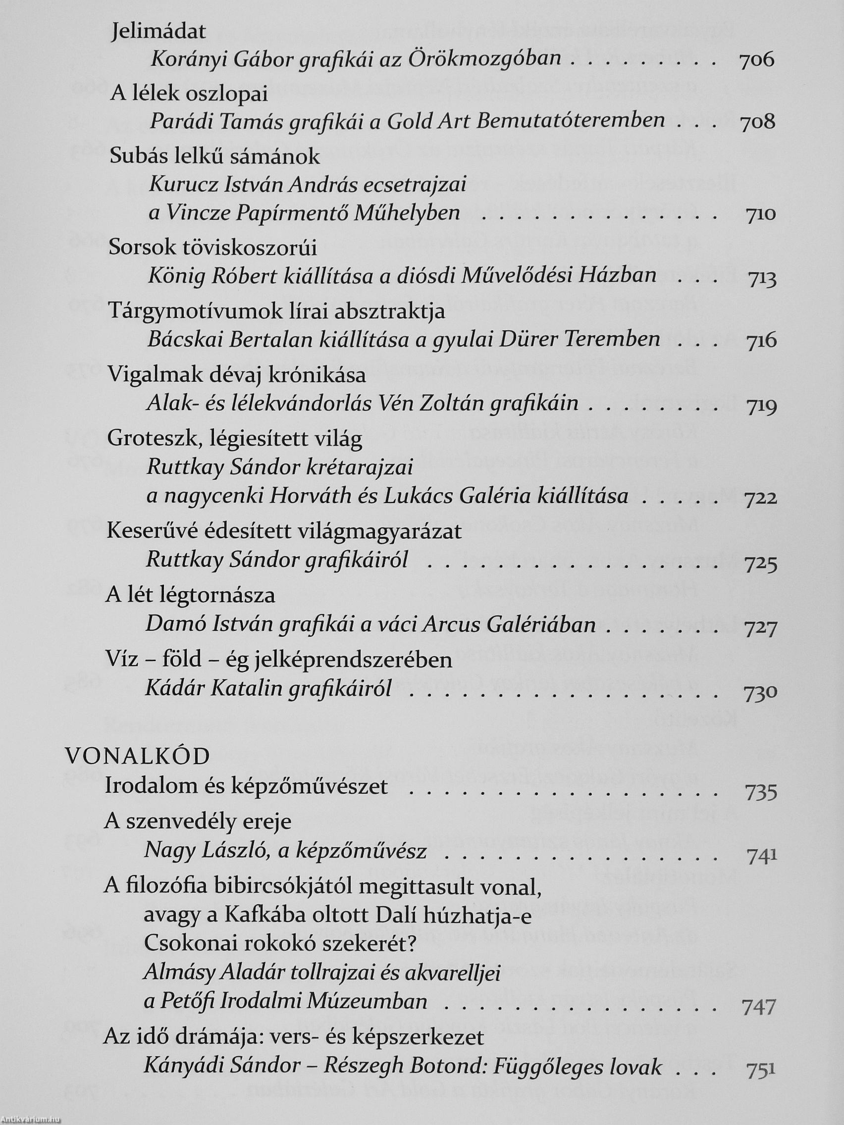 Szakolczay Lajos irodalom- és művészet- 1* kritikus terjedelmében és horizontjában | is impozáns könyvében a múlt század j nyolcvanas éveitől Jcezdődően két és fél ^ évtized képMművészeti írásait fogta, egybe. A kö^ címe elárul valamit abból az irányijukon túlmutató szellemi készenlétbőlj|«mely a szerzőt jellemzi. Aki j obbára a inagyar művészettel foglalkozik behatójl^ - azon belül is a kortárs művészettel -^?e ki-kitekint némely külföldi alkotórá*|€s az egyetemes művészet / nagyjainak életútjára, eredményeire is.