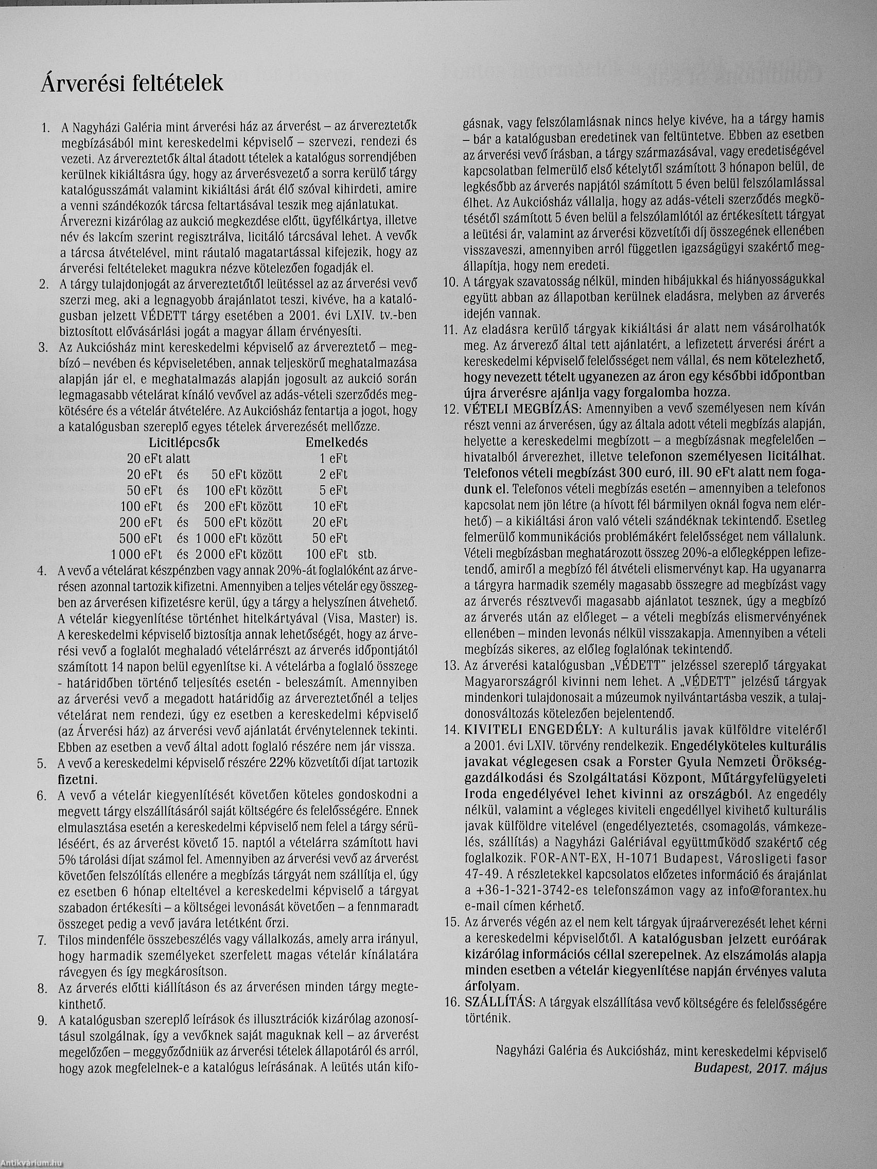 | Megjegyzés: | Árverési katalógus. Színes fotókkal. Angol nyelvű árverési feltételekkel. Az árverést vezeti: Soóky Marietta |