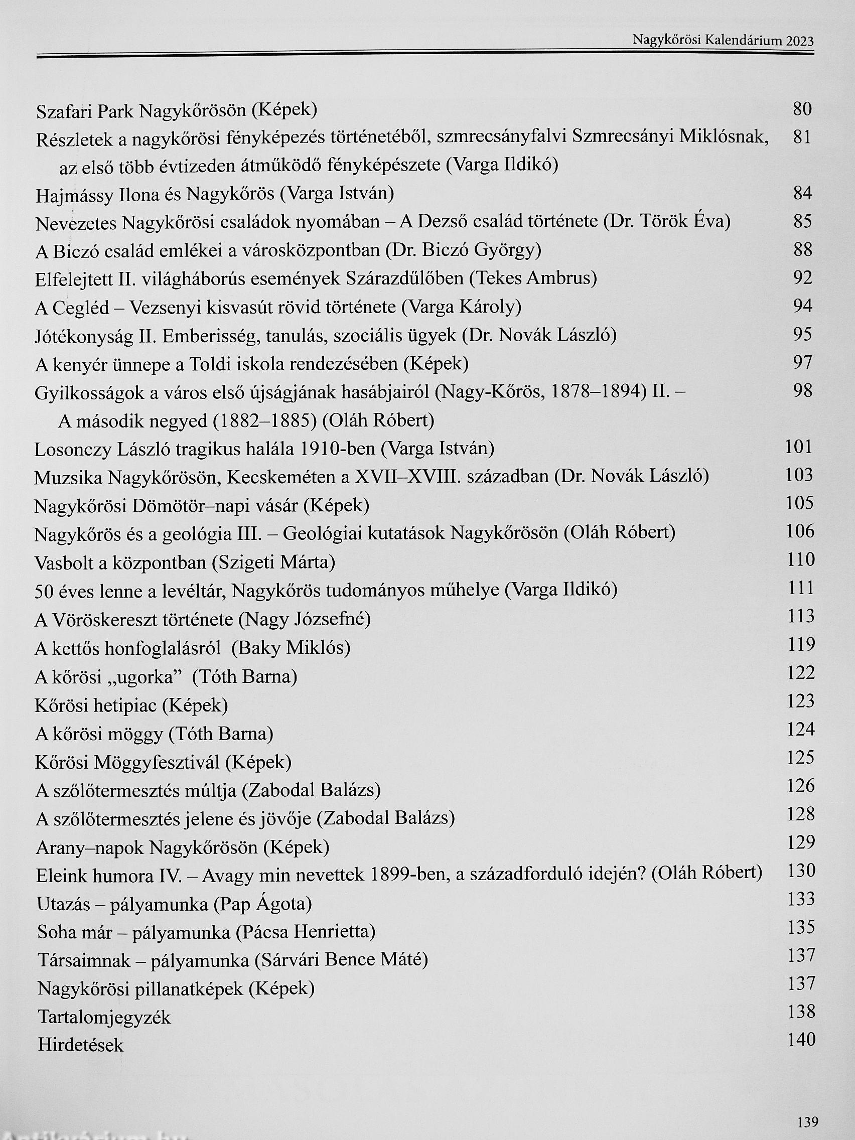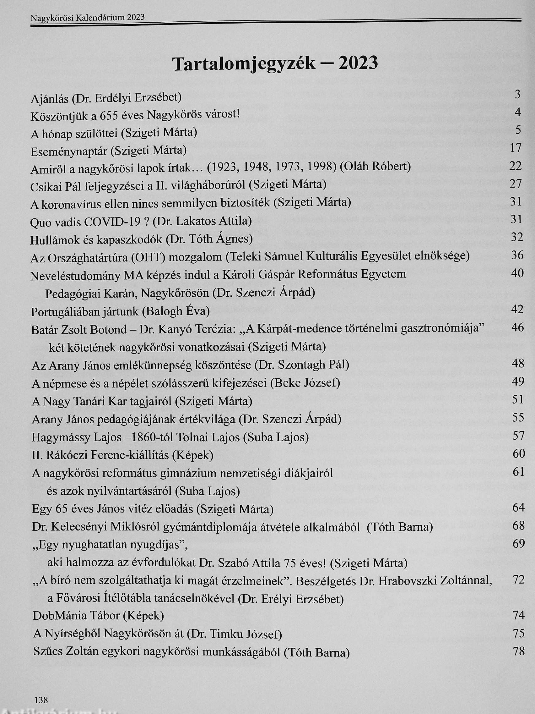 | Sorozatcím: | Nagykőrösi Kalendárium |