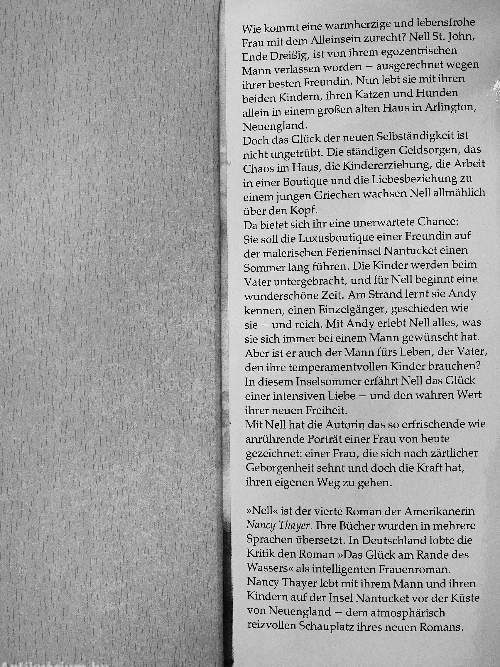Da bietet sich ihr eine unerwartete Chance: Sie soll die Luxusboutique einer Freundin auf der malerischen Ferieninsel Nantucket einen Sommer lang führen. Die Kinder werden beim Vater untergebracht, und für Neil beginnt eine wunderschöne Zeit. Am Strand lernt sie Andy kennen, einen Einzelgänger, geschieden wie sie - und reich. Mit Andy erlebt Neil alles, was sie sich immer bei einem Mann gewünscht hat. Aber ist er auch der Mann fürs Leben, der Vater, den ihre temperamentvollen Kinder brauchen? In diesem Inselsommer erfährt Neil das Glück einer intensiven Liebe — und den wahren Wert ihrer neuen Freiheit.