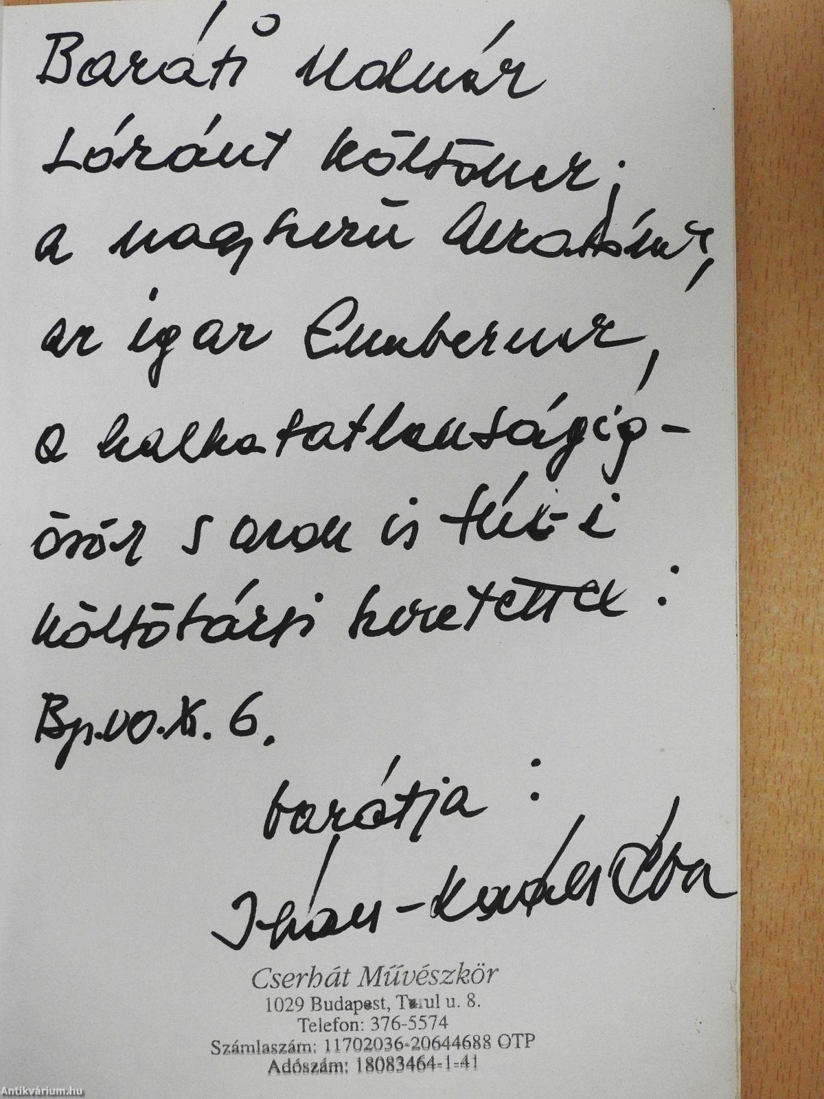 ...Írói létének két világítótorony-író adott életet: Márai és Kassák. Élete tanúi. De hát csak az emlegethet, hivatkozhat, akinek megadatott e két ember közelében lenni. Leveleket is idéz, mert a levél mindig bizonyság!