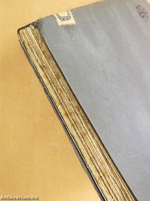 A gerinc javított, rajta címke található. A lapélek foltosak, egyenetlenek.
