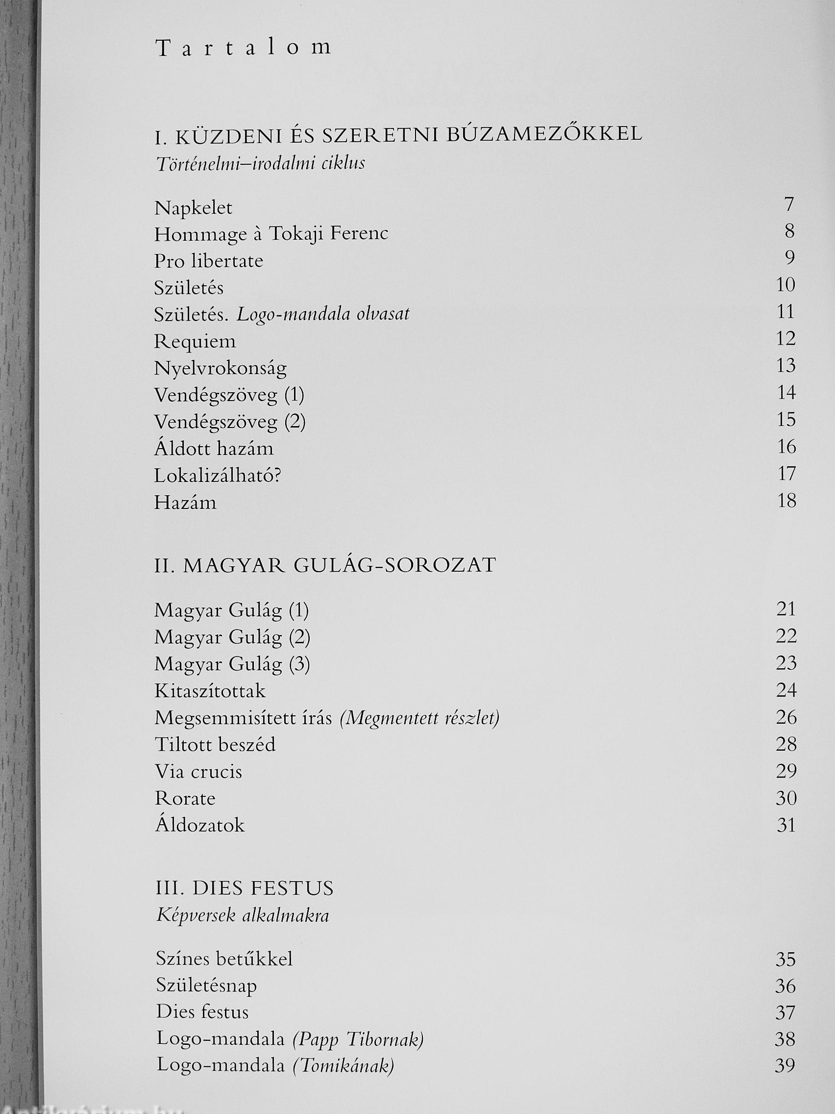 Kelemen Erzsébet kötetének történelmi—irodalmi ciklusba tartozó művei új fejezetet nyitnak a kortárs vizuális költészetben: nemcsak az irodalmi köztudatból kiszorult, vagy még mindig nem az őket megillető helyen lévő alkotóknak (pl. Tormay Cécile), a nemrég elvesztett, nagyra becsült költőnknek, irodalomtörténészünknek, karmesterünknek és zeneszerzőnknek (Nagy Gáspár, Görömbei András, Záborszky József), nevezetes történelmi személyeknek, eseményeknek (KlebelsbergKuno, Tokaji Ferenc, Rákóczi-szabadságharc stb.) adózik tisztelettel, de a képversirodalomban eddig még ismeretlen téma is „megszólal" benne: a vizuális költemények a tizenkét hortobágyi kényszermunkatábor áldozatainak is emléket állítanak, illetve