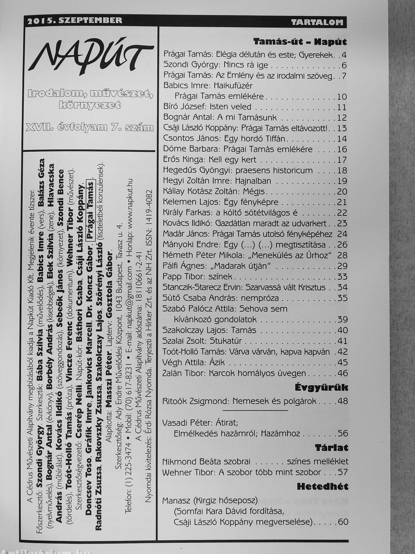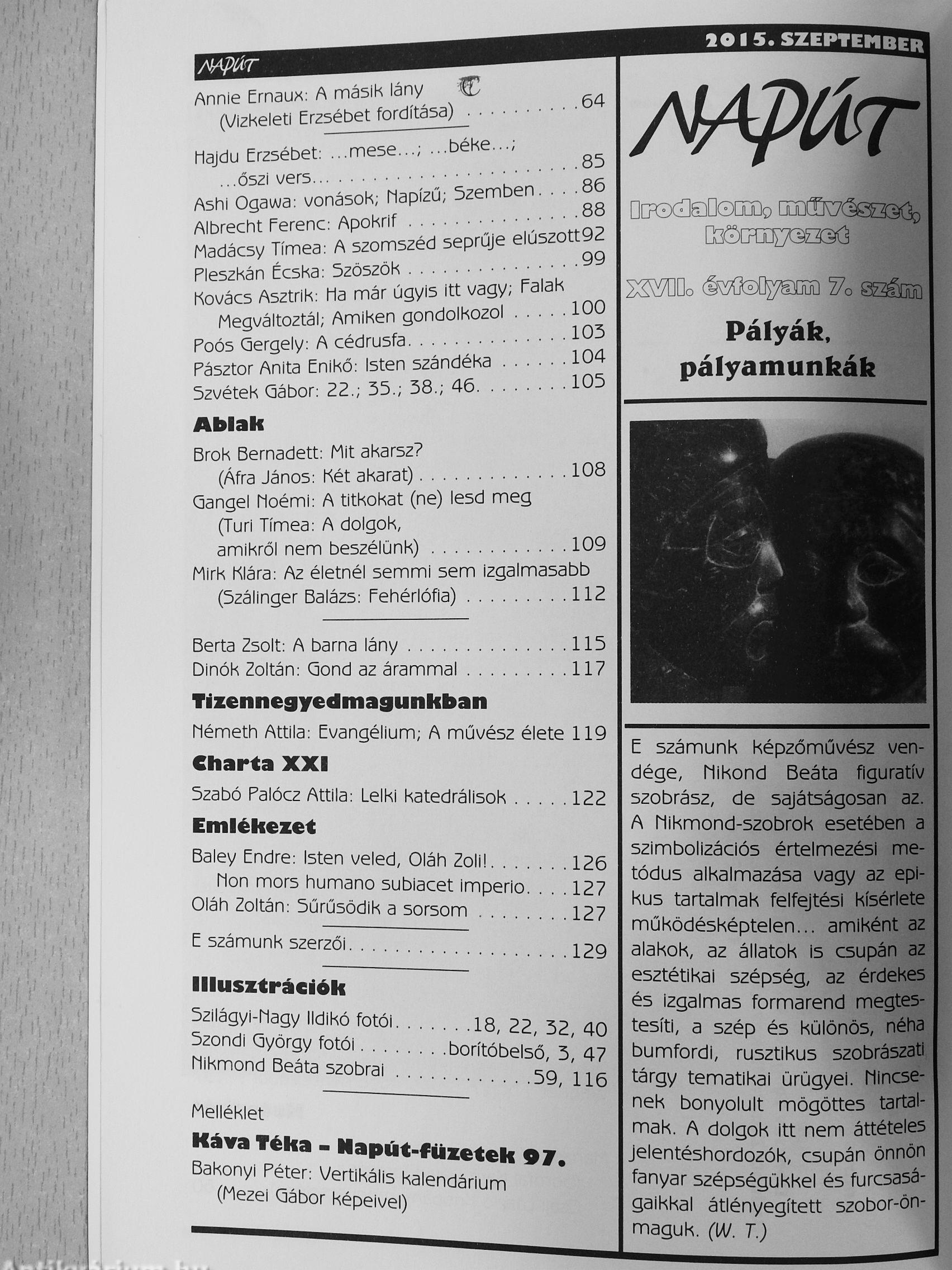 A napút elérhető az interneten: http://www.napkut.hu Számlaszám: OTP 11713005-20381185