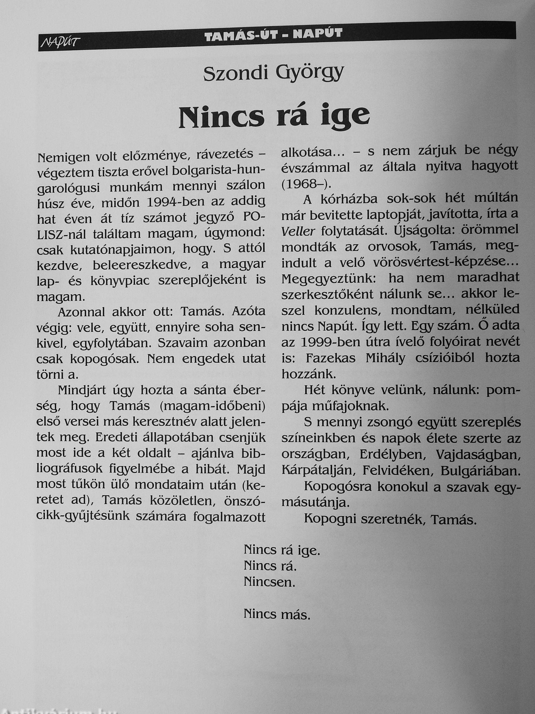 „Hogy is lenne szememben, aki ismertem, na^obb veszteség szeme ragyogásánál, ami vele halt el szemünk elől. És minden ismert láthatárról. Minden jövendőből, ami dereng csak. De ismerős az öröklétben." (Bognár Antal Prágai Tamásról)