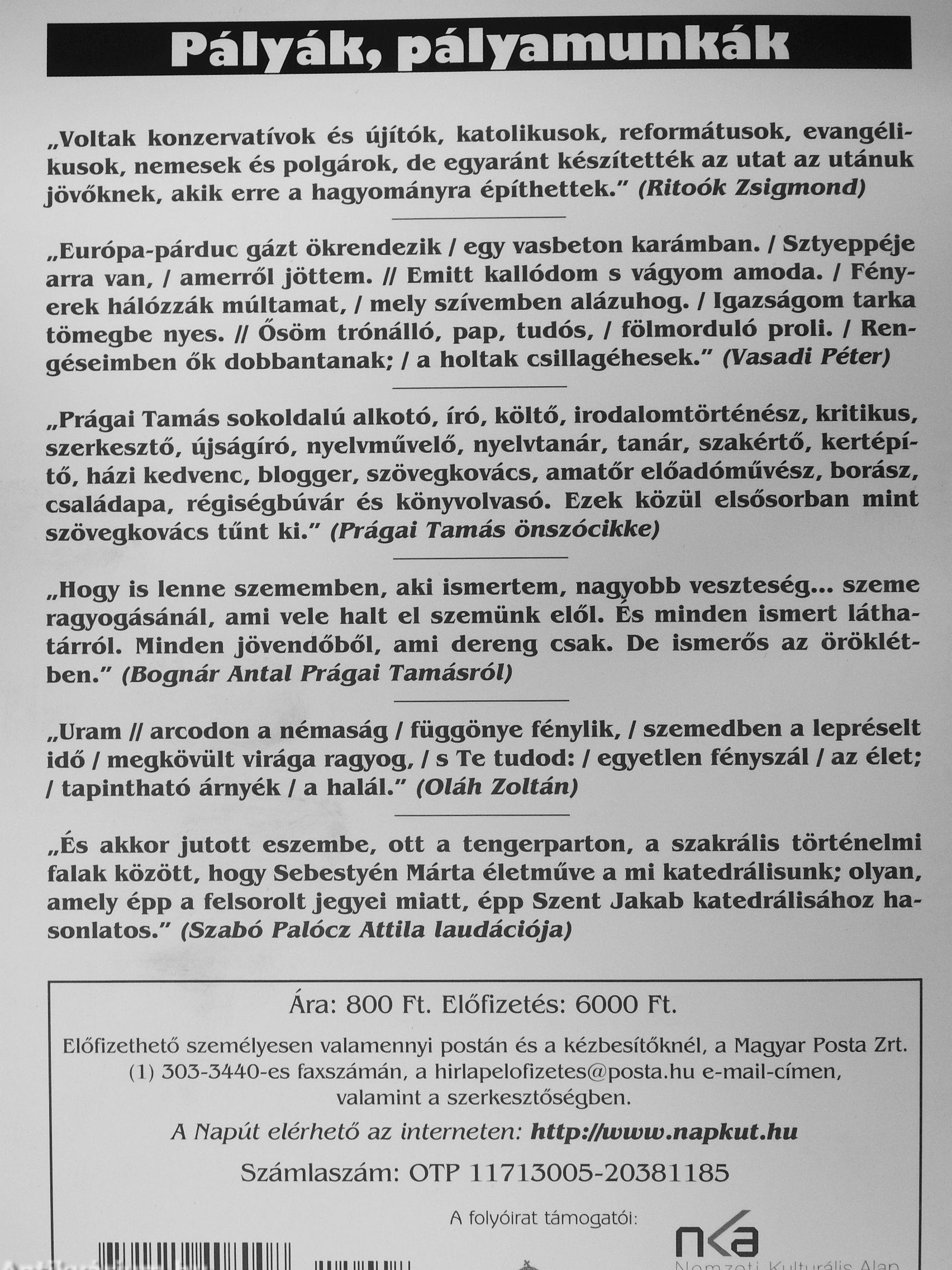 Ara: 800 Ft. Előfizetés: 6000 Ft.