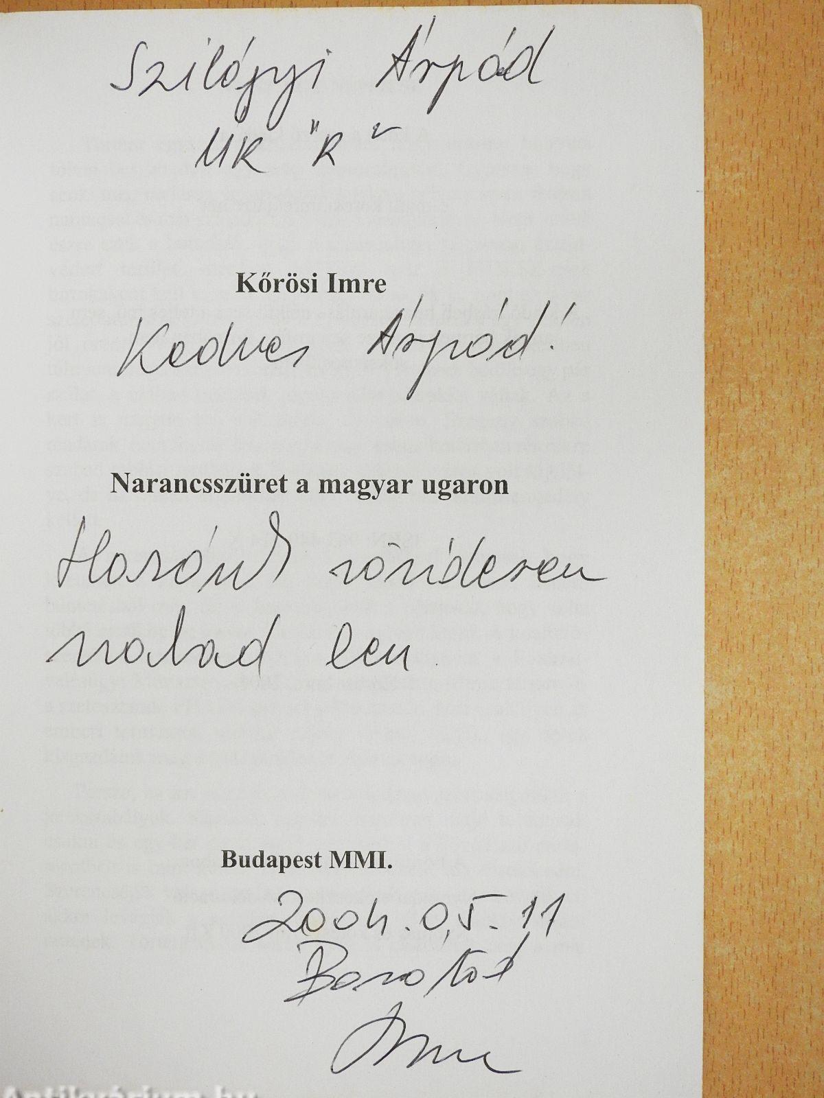 | Megjegyzés: | Kőrösi Imre szerző által dedikált példány. |