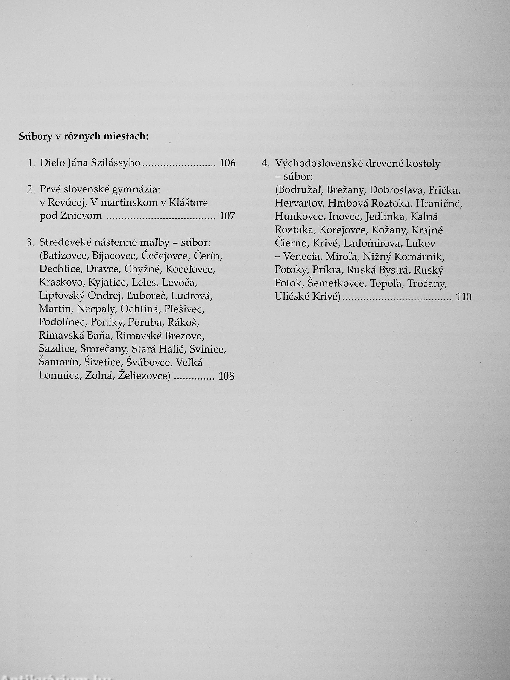 Die Publikation stellt die Auswahl von nationalen Kulturdenkmälern vor, die die Burgen, Kastelle, Kirchen, Kloster, archäologische Fundstellen, mittelalterliche Wandmalerei, Denkmäler der nationalen Geschichte repräsentieren. Sie versucht, ihre Bedeutung näherzubringen, sowie auf die bunte Wertskala hinzuweisen, die sie repräsentieren.