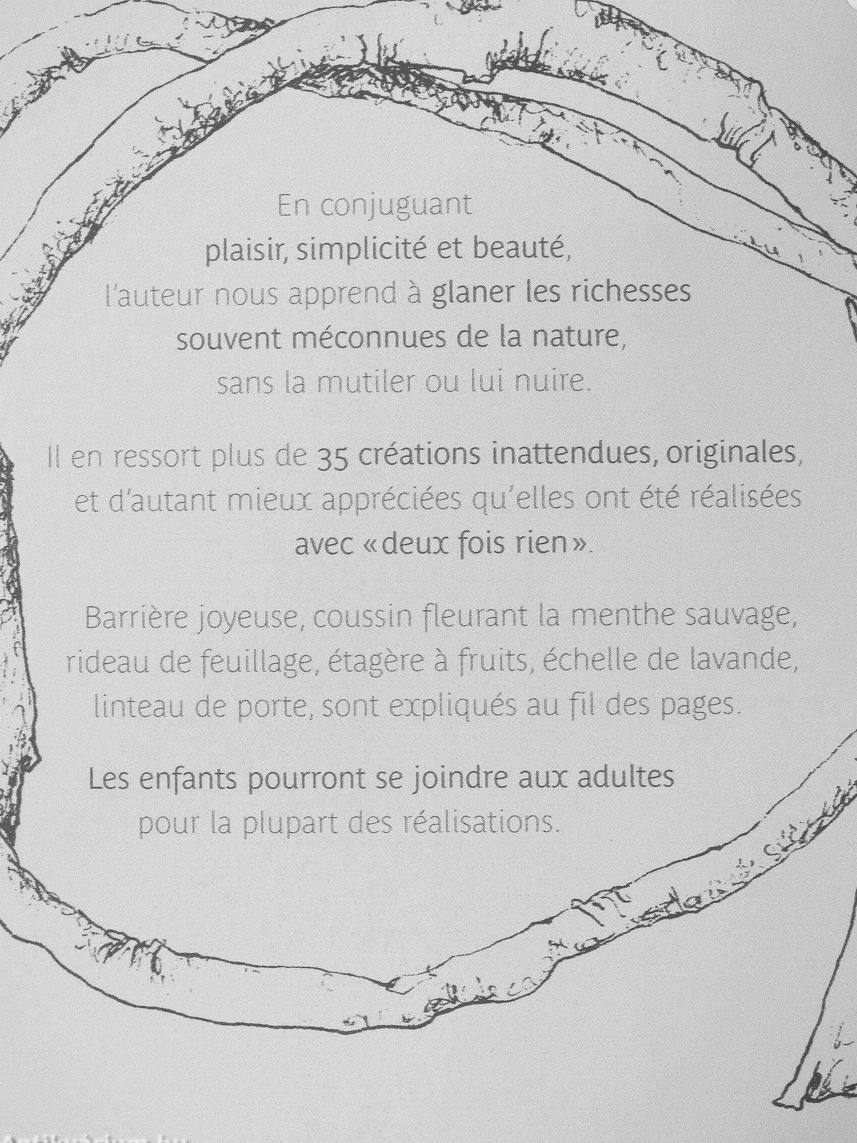 Barriere joyeuse, coussin fleurant la menthe sauvage, rideau de feuillage, étagere a fruits, échelle de lavande, linteau de porte, sont expliqués au fil des pages.