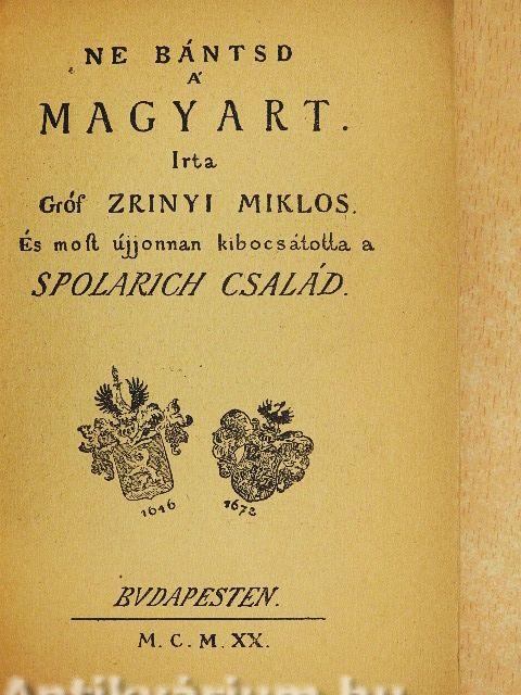 Megjegyzés: Irta Gróf Zrinyi Miklós és most újonnan kibocsátotta a Spolarich Család. A címlap előtt a szerző fekete-fehér képével, három kézirat hasonmással és egy térképpel.