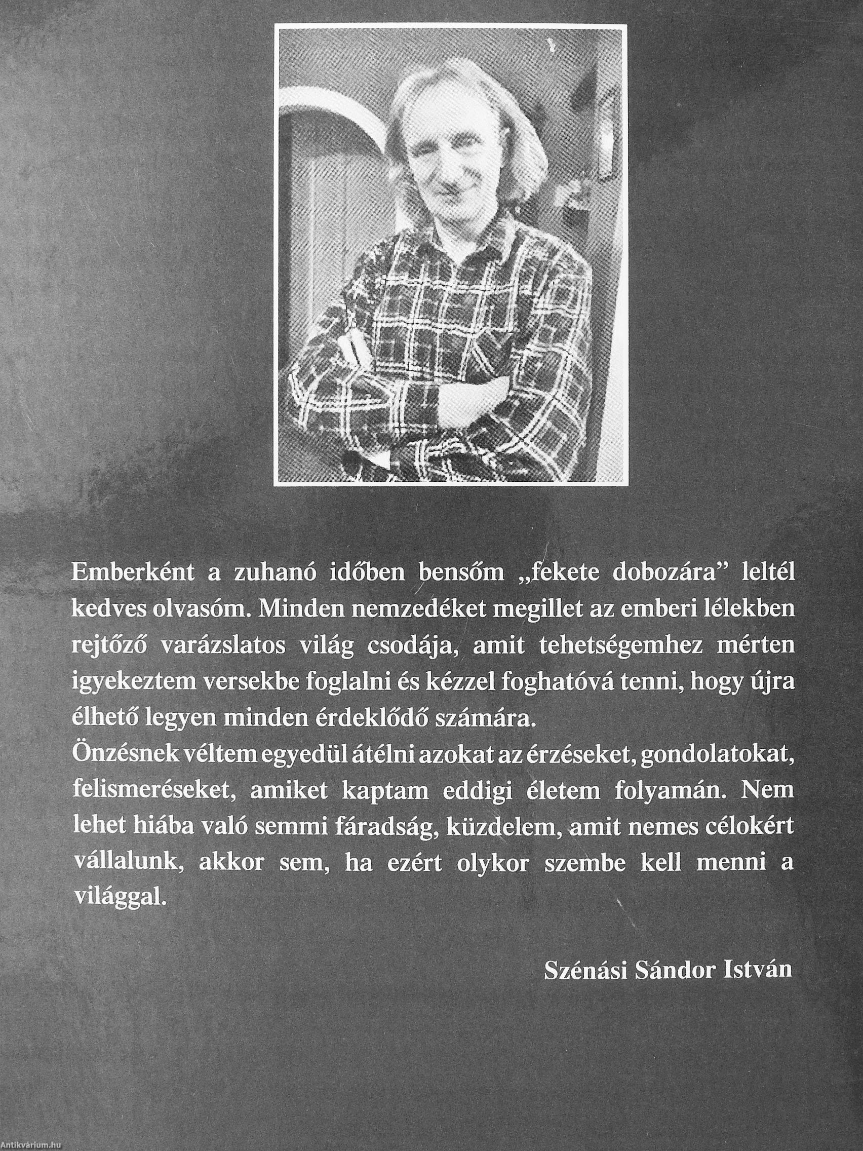 Emberként a zuhanó időben bensőm „fekete dobozára" leltél kedves olvasóm. Minden nemzedéket megillet az emberi lélekben rejtőző varázslatos világ csodája, amit tehetségemhez mérten igyekeztem versekbe foglalni és kézzel foghatóvá tenni, hogy újra élhető legyen minden érdeklődő számára. Önzésnek véltem egyedül átélni azokat az érzéseket, gondolatokat, felismeréseket, amiket kaptam eddigi életem folyamán. Nem lehet hiába való semmi fáradság, küzdelem, amit nemes célokért vállalunk, akkor sem, ha ezért olykor szembe kell menni a világgal.