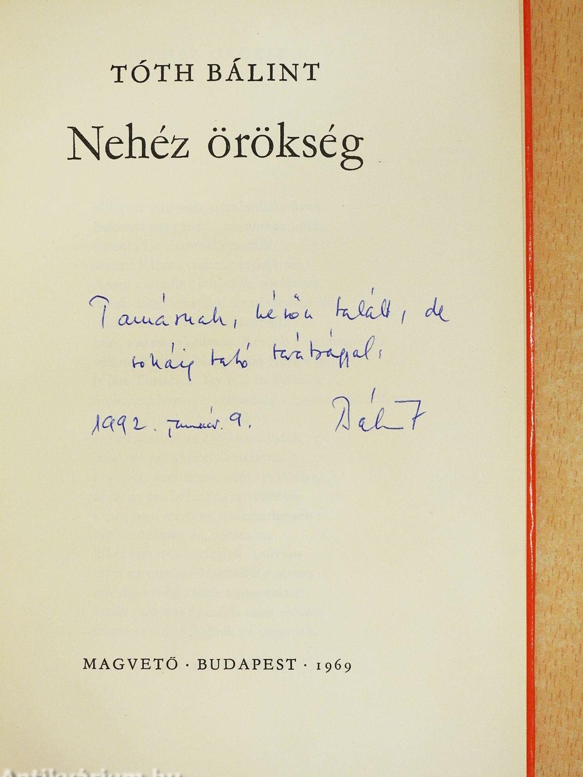 Nehéz örökség (dedikált példány)
