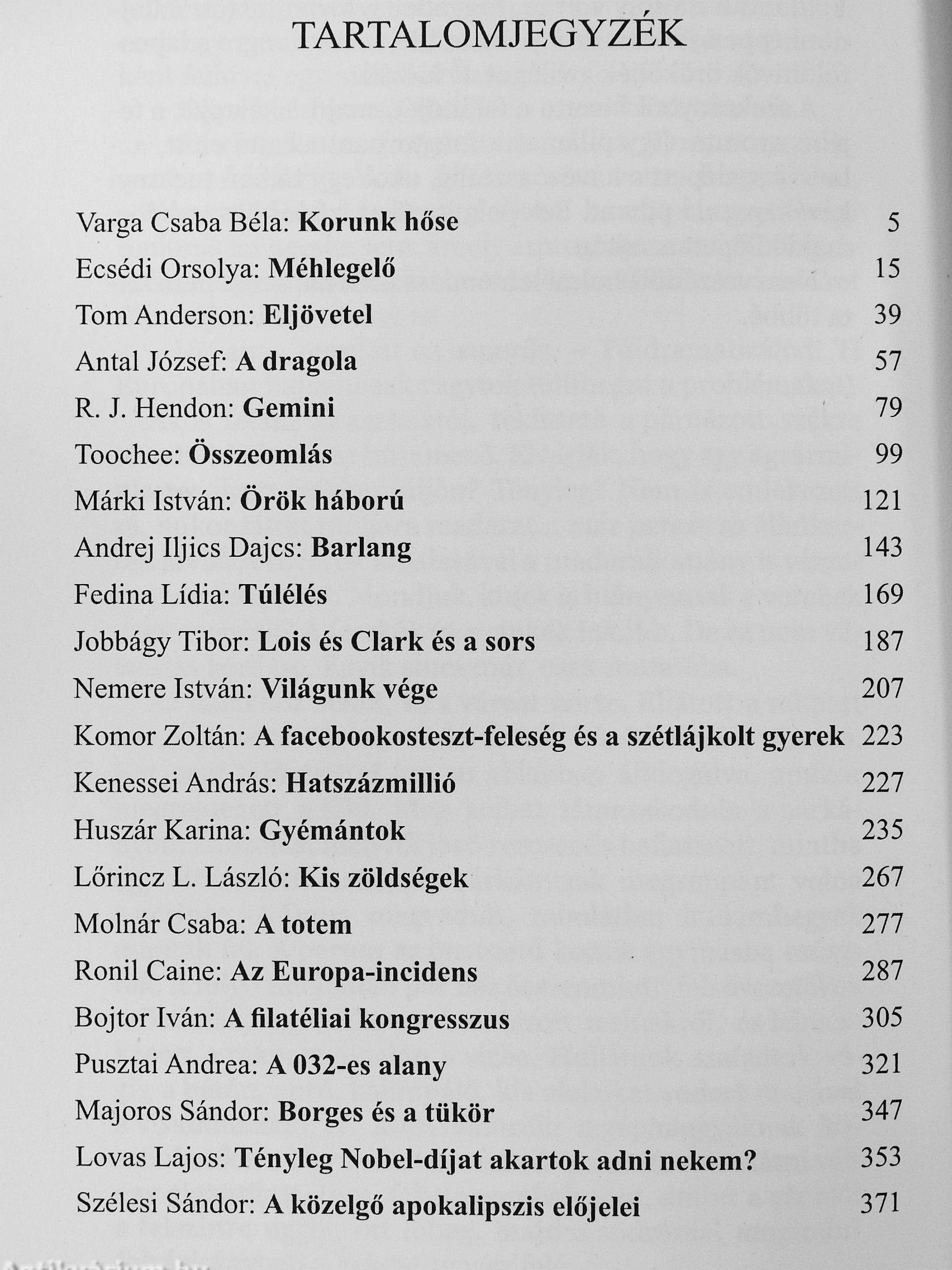 Huszonkét izgalmas, szívszorító vagy épp lelkesítő írás hol filozofiku-sabb, hol kalandosabb stílusban. A szerzők között ott sorakoznak hazai és külföldi díjak nyertesei, közönségkedvencek és fiatal tehetségek egyaránt, de a céljuk ugyanaz: szórakoztatni és gondolkodtatni.