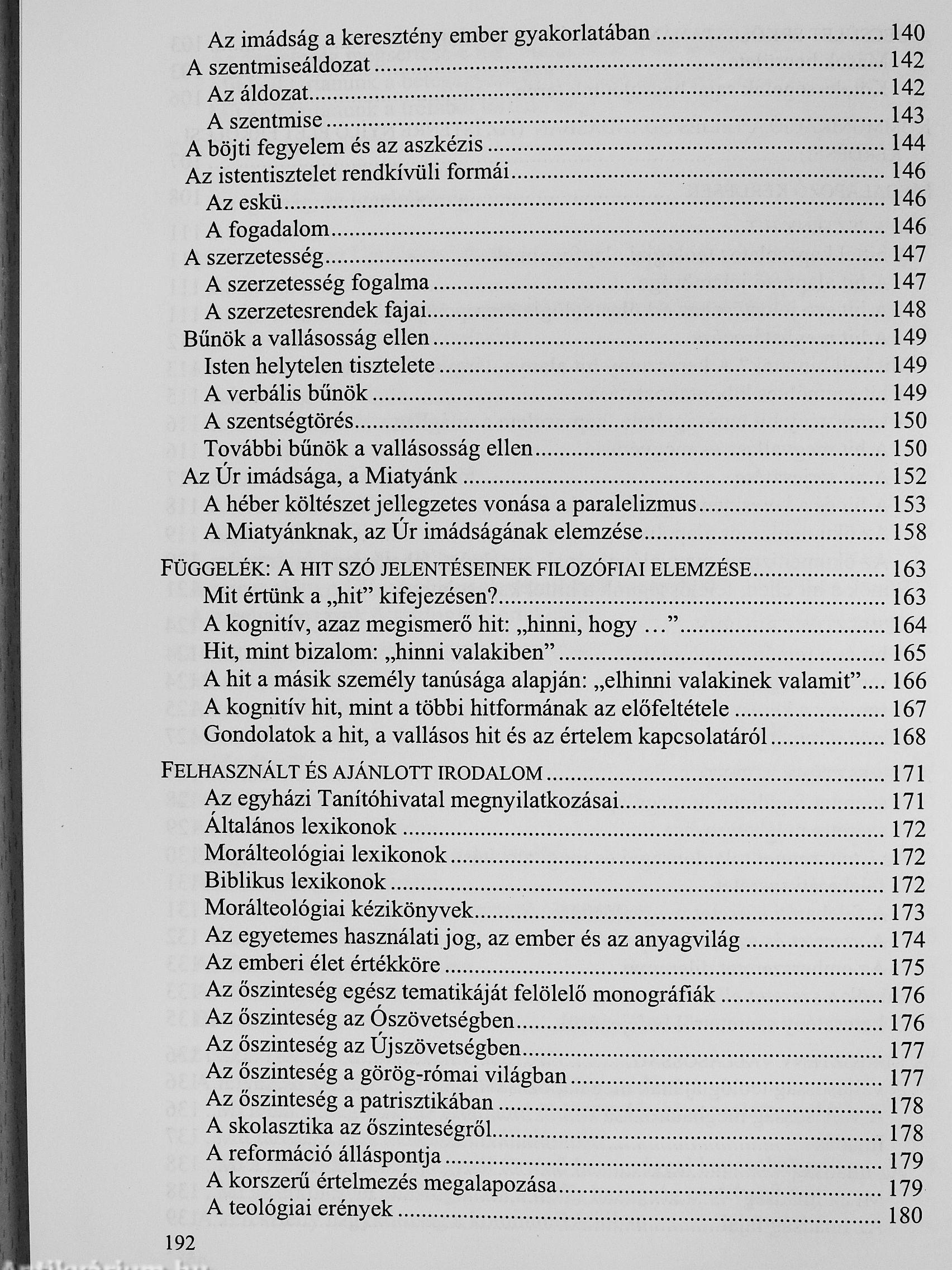 Piarista Hittudományi Főiskola. (A Jelen mű ennek a könyvnek Jelentősen bővített kiadása.; A hit megélese. Istennel való kapcsolatunk erkölcstana. Vác, 2004. Piarista Rendház. Keresztény élet - igazságosságban és szeretetben. A morálteológia vázlatos áttekintése.