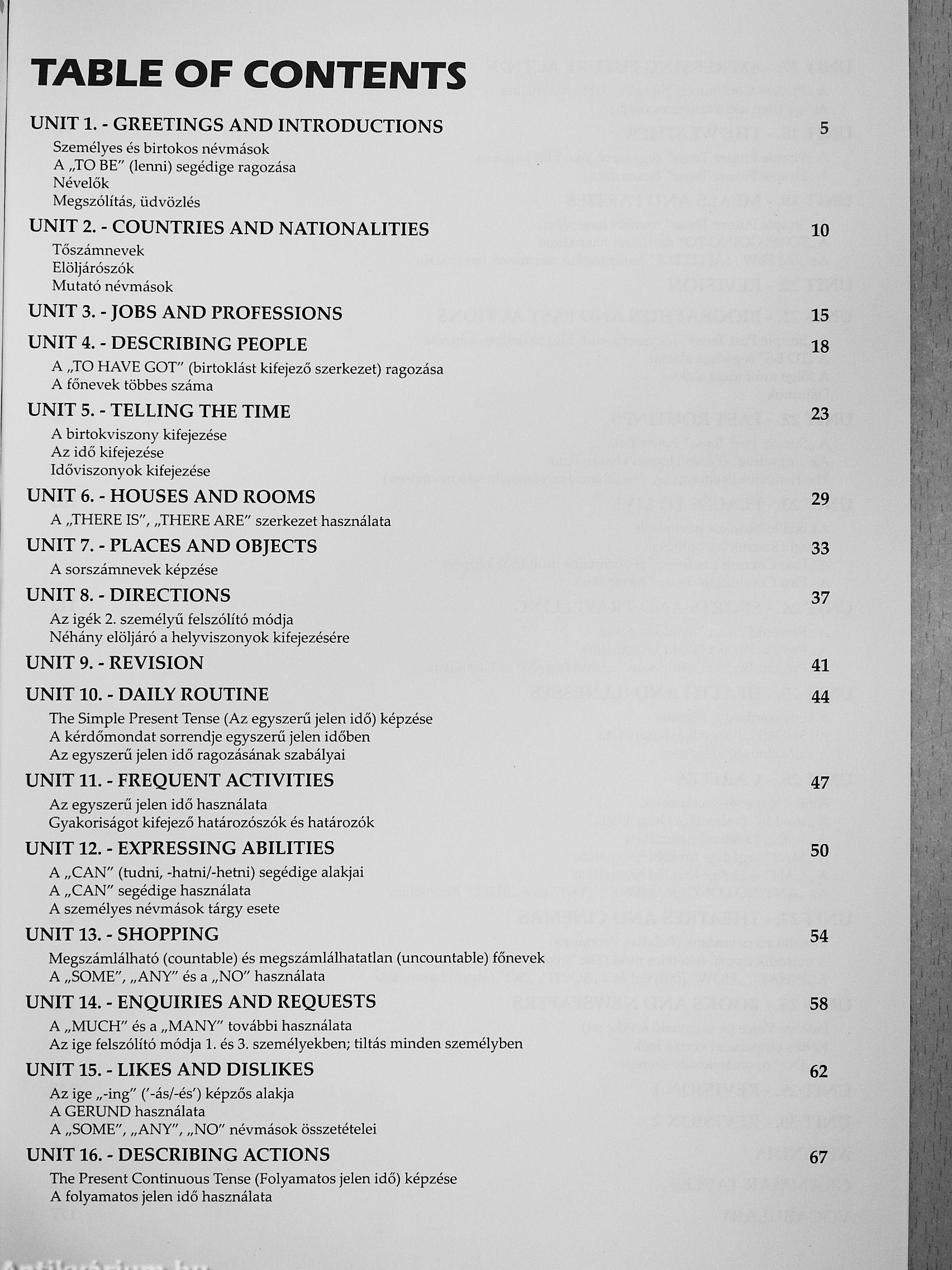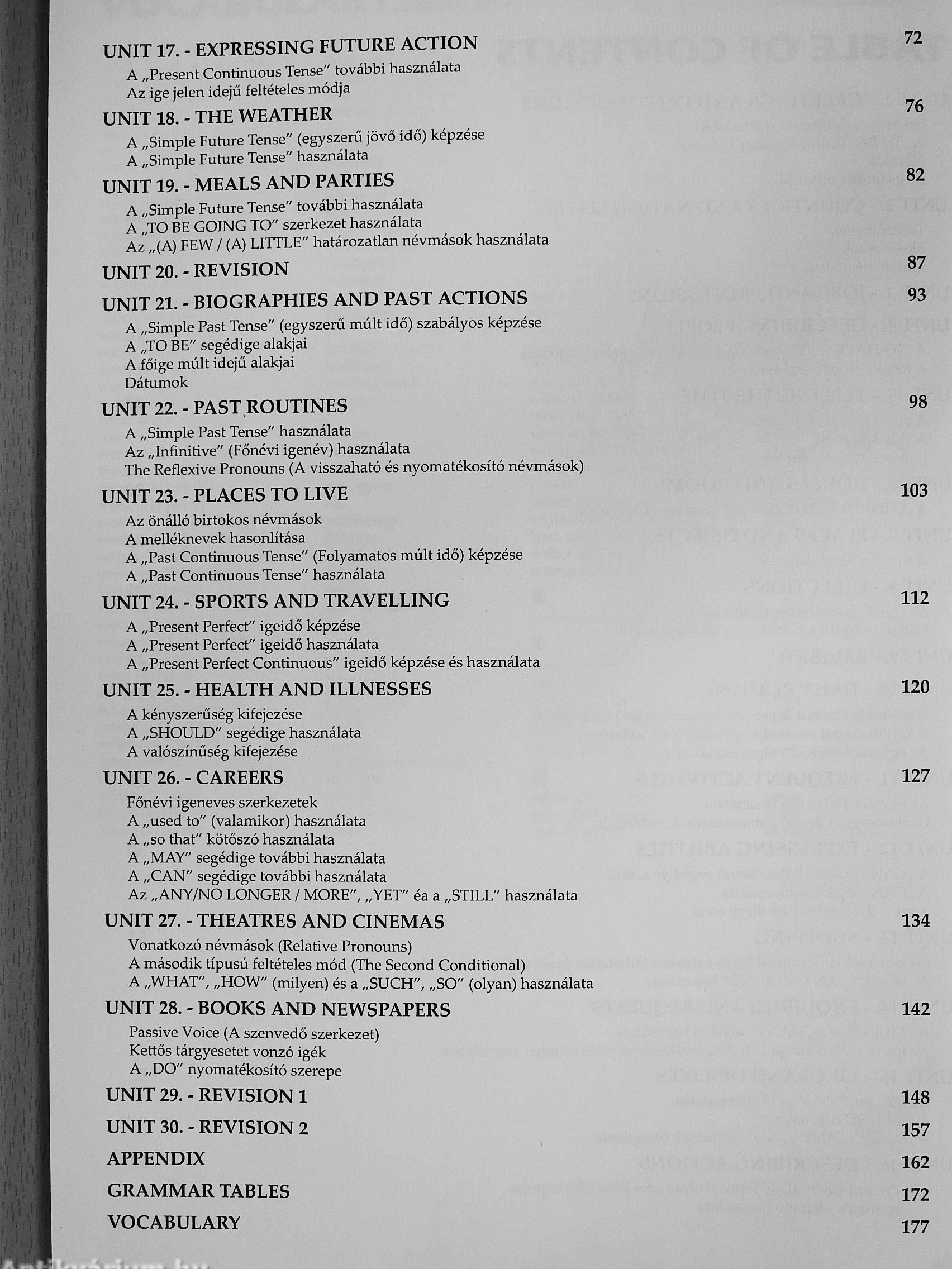 • világos, magyar nyelvű nyelvtani magyarázatok minden fejezet elején, példamondatokkal;