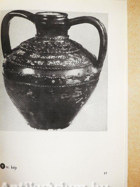 | "Nagy korsó" butykoskorsó bor számára. Lelőhelye Kispalád, Szatmár m. Zöldmázas, dombormüves | |