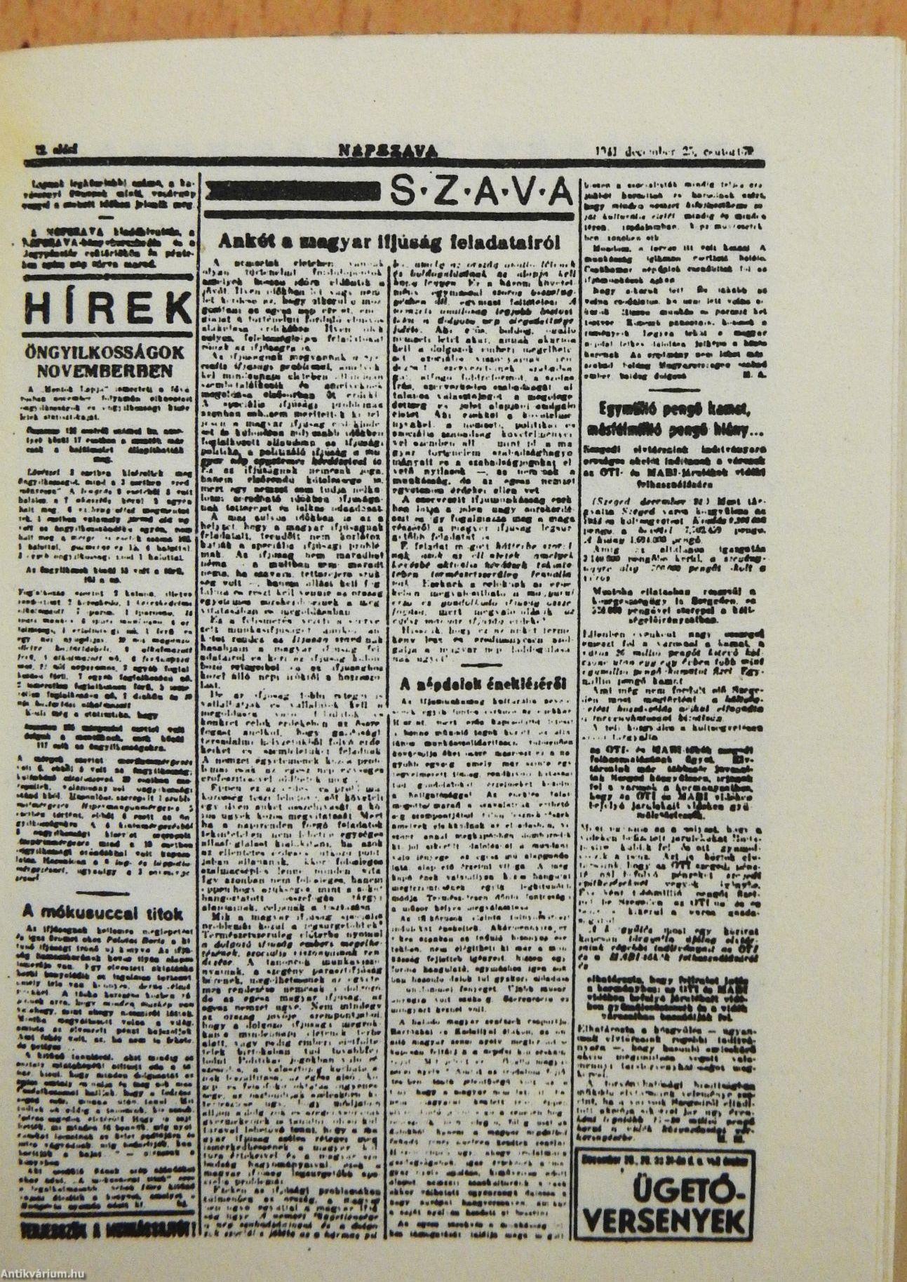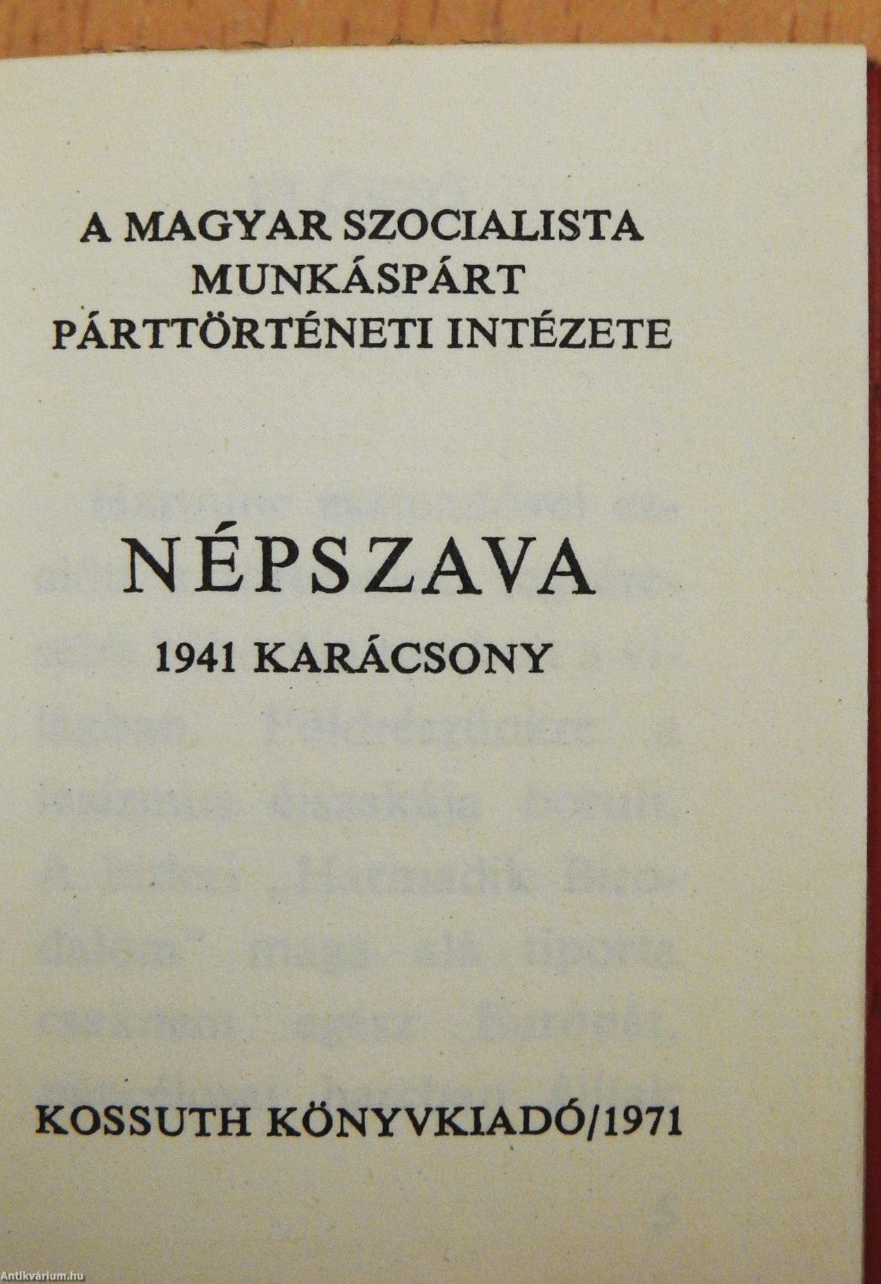 A "Népszava" 1941 karácsonyi száma kiemelkedő politikai esemény volt. Hasábjain a kommunisták közül Földes Ferenc Rákóczit idézte. Mód Aladár a kiegyezés utáni új Magyarországról szólt, e sorok írója pedig I. István kapcsán az állami önállóság, a társadalmi haladás eszméjét választotta témájául. Szakasits Árpád mellett megszólalt a lapban a baloldali szociáldemokraták közül Kasztel András és Gosztonyi Lajos, akik később kommunisták lettek. A Kisgazdapárt baloldalához tartozó Bajcsy-Zsilinszky Endre cikkében Kossuth külpolitikájára emlékeztet, s hangsúlyozza, hogy bármilyen "bizonytalan is a harc kimenetele, de nem hozhat végleges bukást egy nagylelkű és bátor nemzet számára, ha minden erejével kiáll a nála sokszorta hatalmasabb erőkkel szemben is." A "népies" balszárny egyik vezető képviselője, Darvas József a Hunyadiak példáját elevenítette fel. Még olyan tudós is, mint Szekfű Gyula - akinek pedig régebben a Horthy-korszak nacionalista ideológiai alapvetésében döntő szerepe volt -, a szabadság fogalmáról írt cikkében azt fejtette ki, hogy nagy elemi csapások, pusztító veszély idején senki sem zárkózhat szobájának falai közé, nem maradhat közömbös, ha élni akar, s hogy "ilyen viharban élünk ma is", tehát "bizonyos lényeges dolgokban kell értenünk egymást". Balogh Edgár kolozsvári publicista Bem apóra hivatkozott, aki "az egész Európára ráterpeszkedő reakcióval szemben még egyszer feltárta egy szélesebb kelet-európai összefogás és ellenállás lehetőségét."