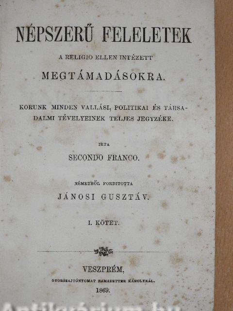 Népszerű feleletek a Religio ellen intézett megtámadásokra I.