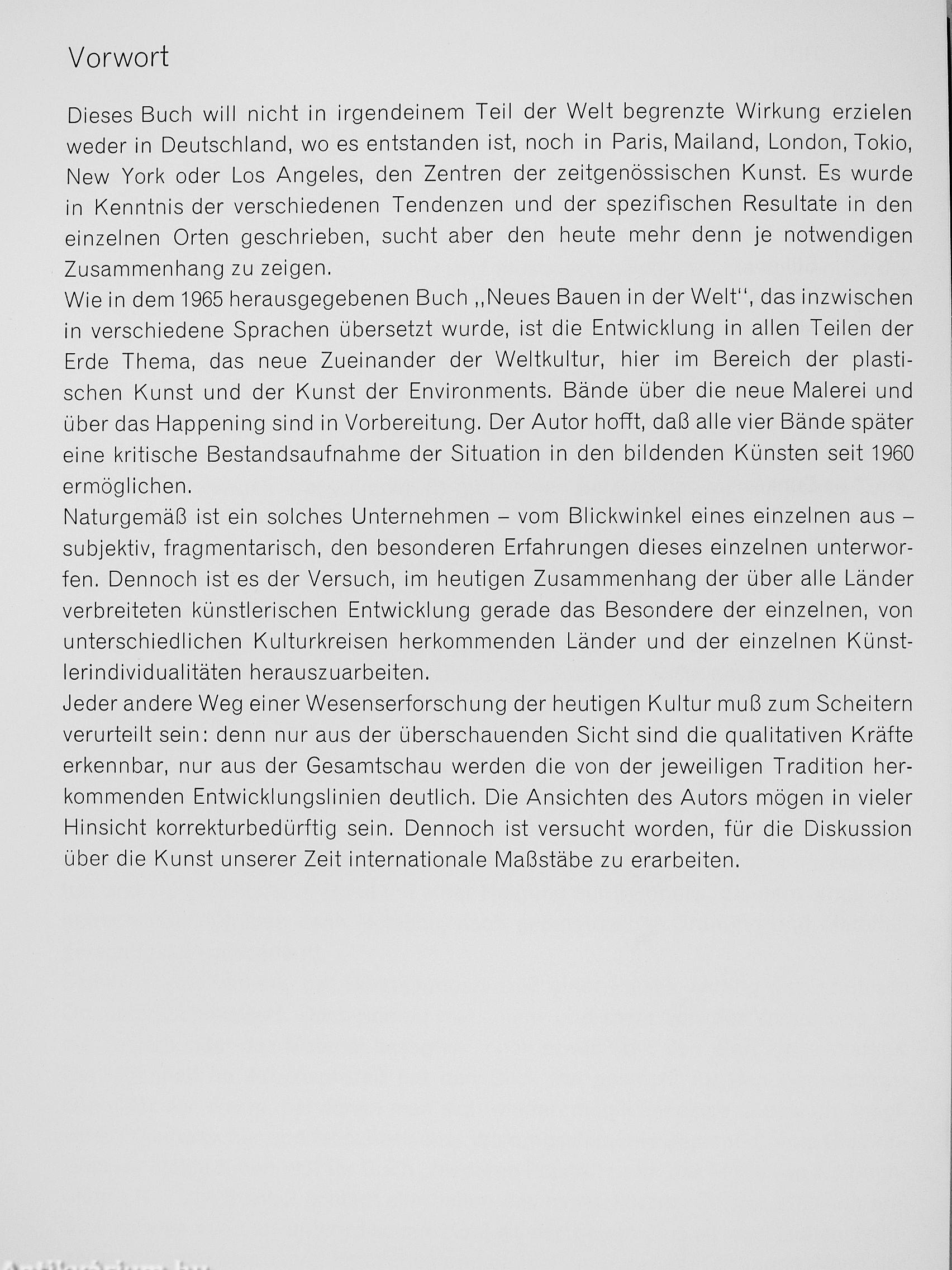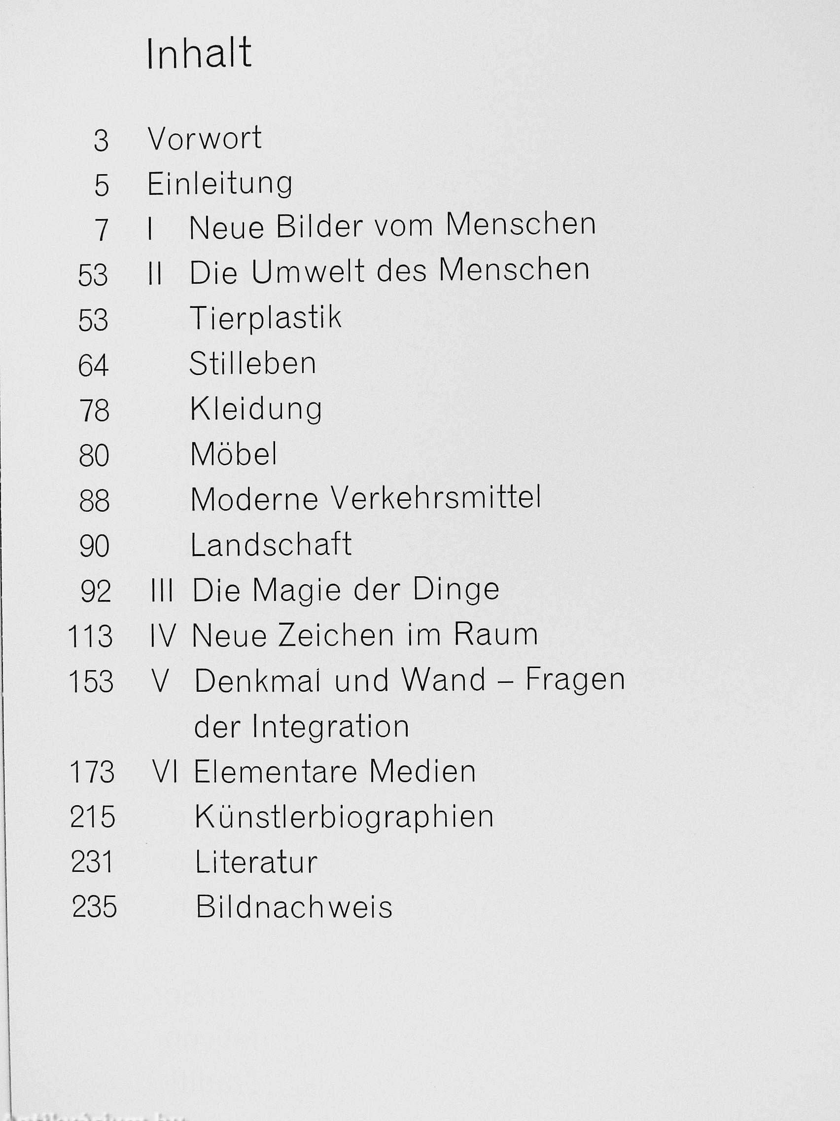 In Fortsetzung des Bandes ,,Neues Bauen in der Welt" ausdem Jahre1965(von dem inzwischenÜbersetzungen in England, den USA, der Tschechoslowakei und Finnland vorliegen) wird hier eine Dokumentation der internationalen Skulptur gegeben. Sowohl das neue Bild des Menschen, der Tiere und Dinge, als auch Stilleben und Landschaft in der Skulptur, die Verwandlung von Abfallstoffen in Werken der Kunst und eine neue Ordnung durch Orientierung an neuen Maßstäben, die architekturgebundene Skulptur ebenso wie die Arbeiten in elementaren Medien wie Wasser (Brunnenplastik), Licht, Elektrizität, Luft (kinetische Kunst) und Bemühungen um räumliche Ensembles(environments) werden mit eindrucksvollen Fotos vorgestellt und in einer grundlegenden Untersuchung interpretiert. Die zeitgenössischen Werke sind nach Aufgaben gegliedert und gleichzeitig mit den Resultaten konfrontiert worden, die in der Skulptur der vergangenen Jahrzehnte bei diesen oder vergleichbaren Themen erzielt worden sind.