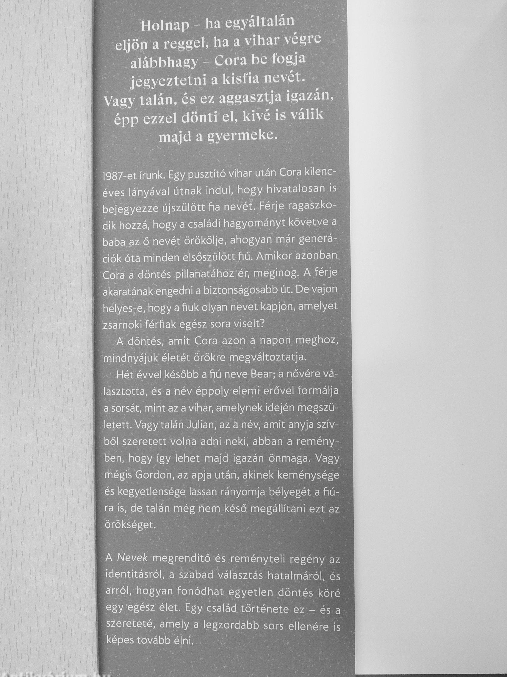 A Nevek megrendítő és renhényteli regény az identitásról, á w^bad választás hatalmáról, és arról, hogyan fonódhgt egyetlen döntés köré egy'egész élet. Egy család, története ez - és a szereteté, amely a legzordabb sors ellenére is képes tovább élniT . , ' ,