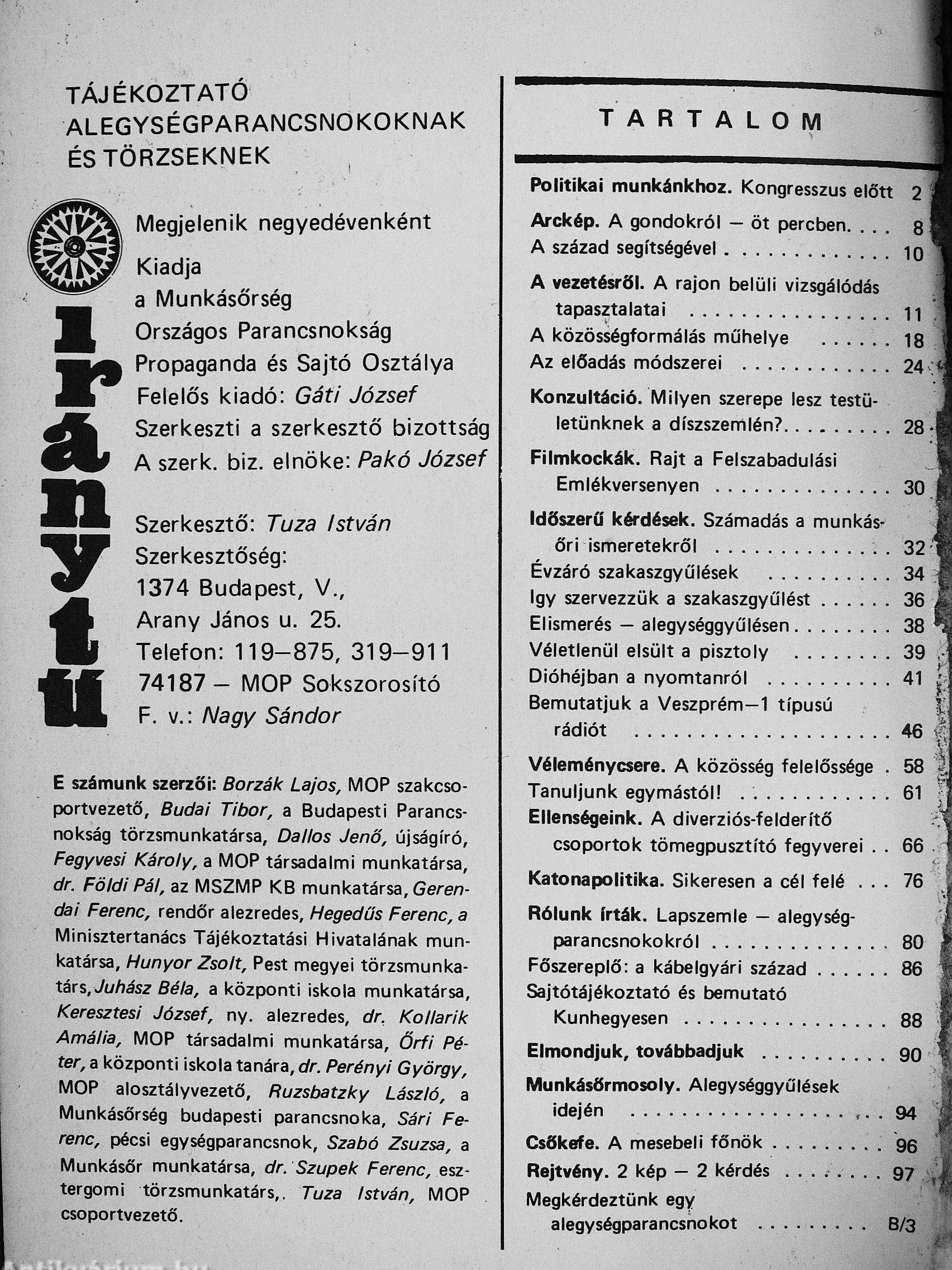Nevelés a kiképzés komplex folyamatában, s a parancsnokok szerepe, felelőssége az állomány nevelésében/A Magyar Népköztársaság honvédelmi készsége ellen irányuló imperialista fellazító tevékenység/Radar 1974/1./Iránytű 1974/1-4.