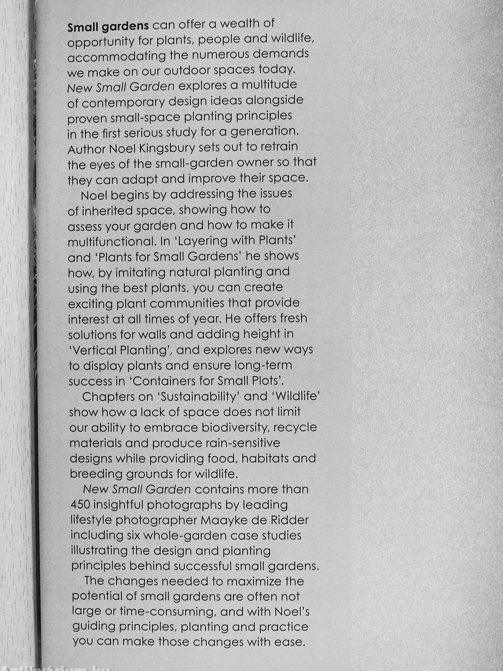 New Small Garden explores a multitude of contemporary design ideas alongside proven small-space planting principles in the first serious study for a generation. Author Noel Kingsbury sets out to retrain the eyes of the small-garden owner so that they can adapt and improve their space.